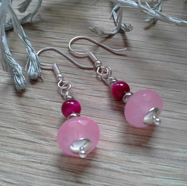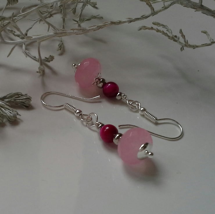 A very pretty pair of earrings designed and hand crafted for everyday wear for those who love the colour pink.