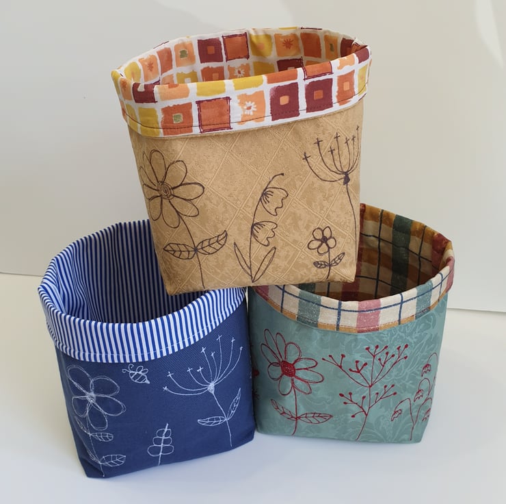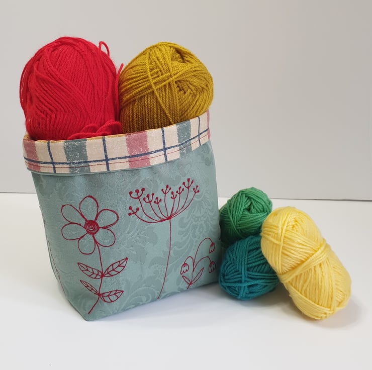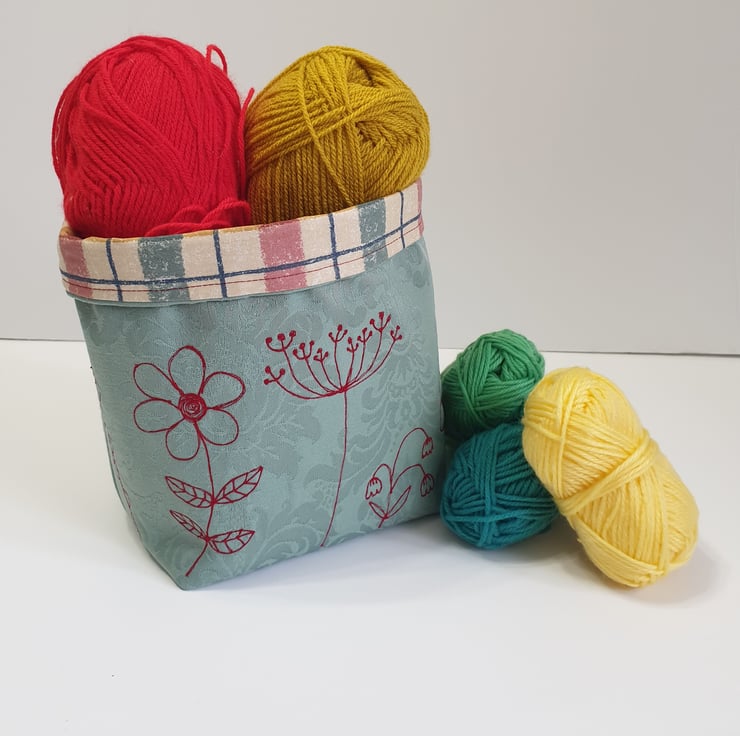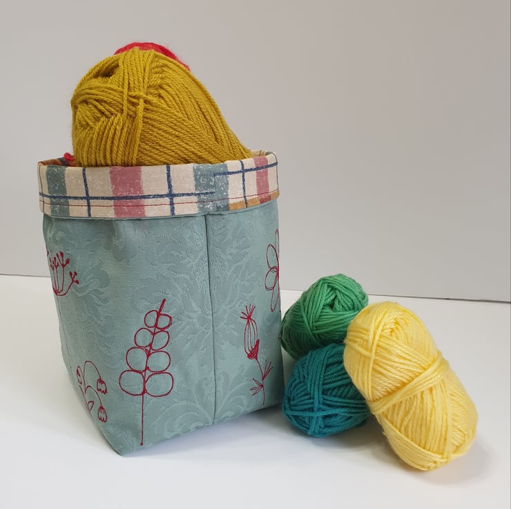 The basket is interfaced for strength but it can also be folded flat for storage, and postage. Any creases can be removed by ironing on the lining side using a medium setting.
