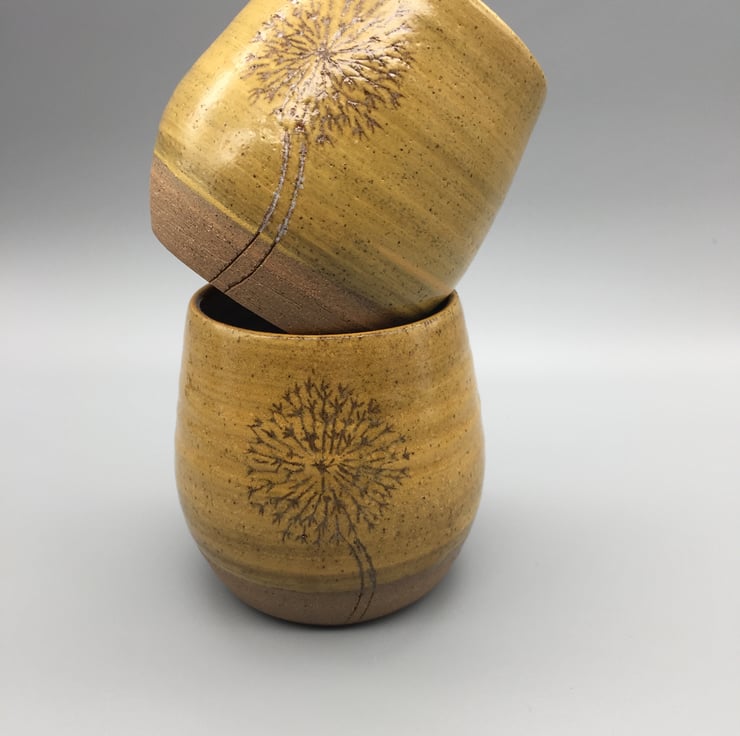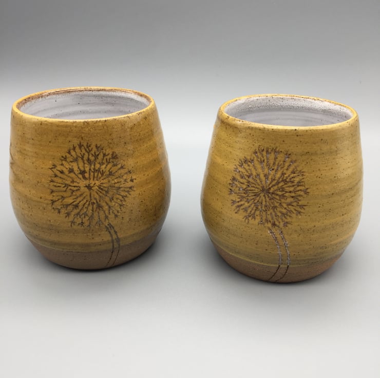 Handmade stoneware tumblers made on the potters wheel and hand decorated making each item unique.