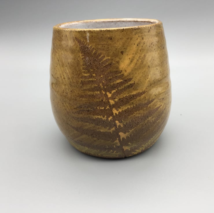 This year I have had some beautiful ferns in my garden. To create the decoration, I used them as a template and painted over them with yellow underglaze, it was very satisfying peeling them of!. This is why each peace is unique.