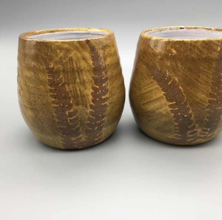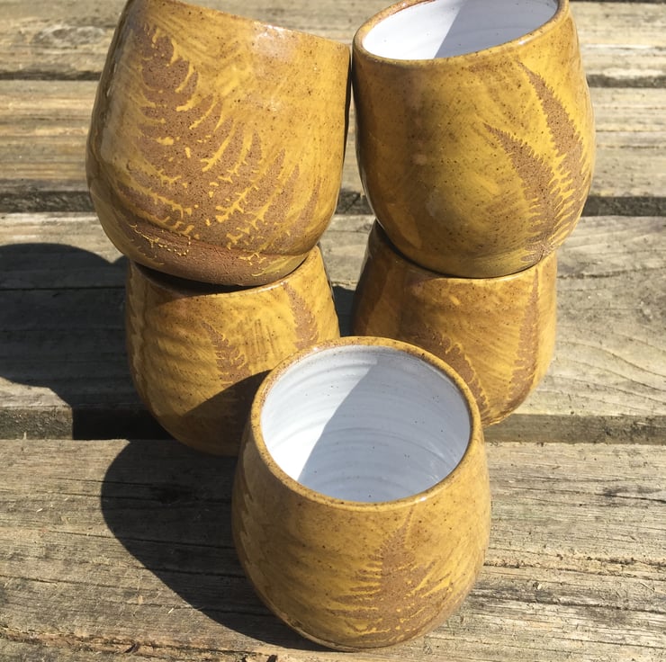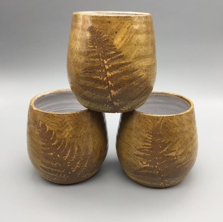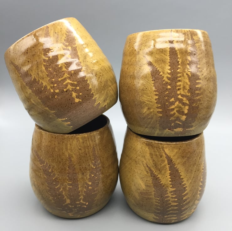 Handmade stoneware tumbles made on the wheel and hand decorated making each piece unique.