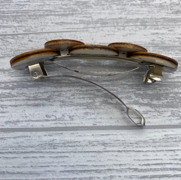 I love buttons and have been using them to make girl’s hair clips for a long time. I recently started making these barrette clips as my hair is getting longer and I wanted something quirky to keep it off my face!