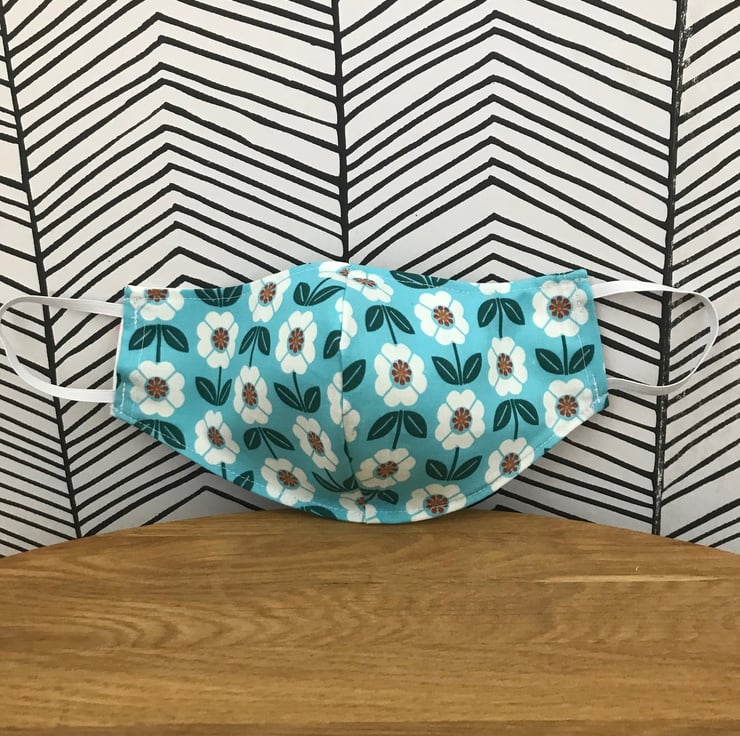 Face Mask Washable and Re-usable 100% Cotton Fabric face covering - Child to Adult Sizes - Choose from 20 fabric designs - Blue Flowers, Stars, Cactus, Rainbows, Feathers, Bears