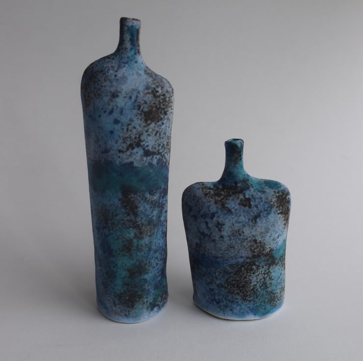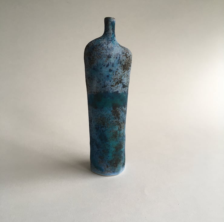 The bottles I make have a figurative form overlaid with glazes that evoke shorelines and landscapes.