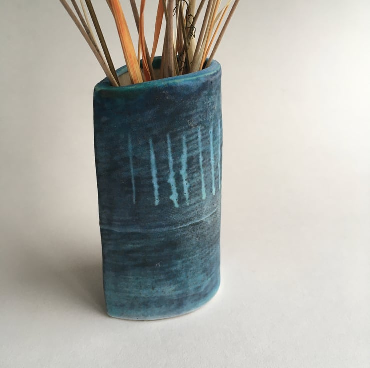 Ideal for a wedding gift, birthday present with a delicate posy of fresh or dried flowers. This small stoneware ceramic vase is both functional and decorative, it will hold water for flowers or herbs having a shiny glaze on the inside.
