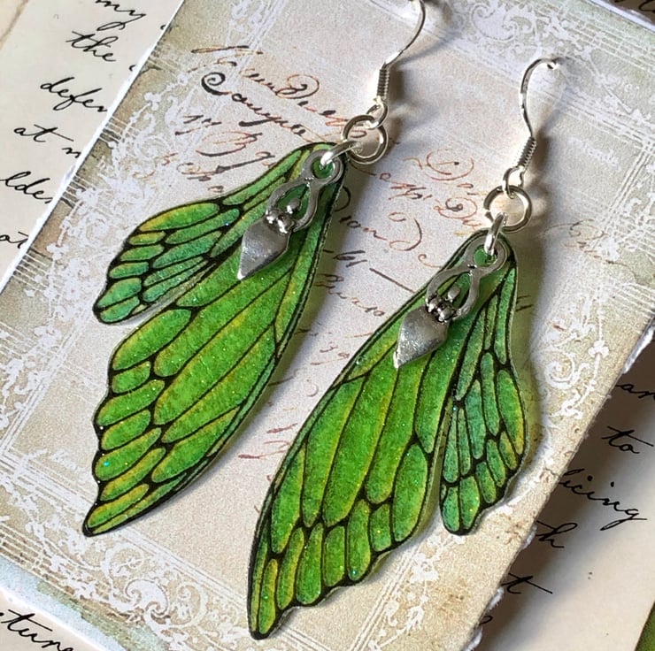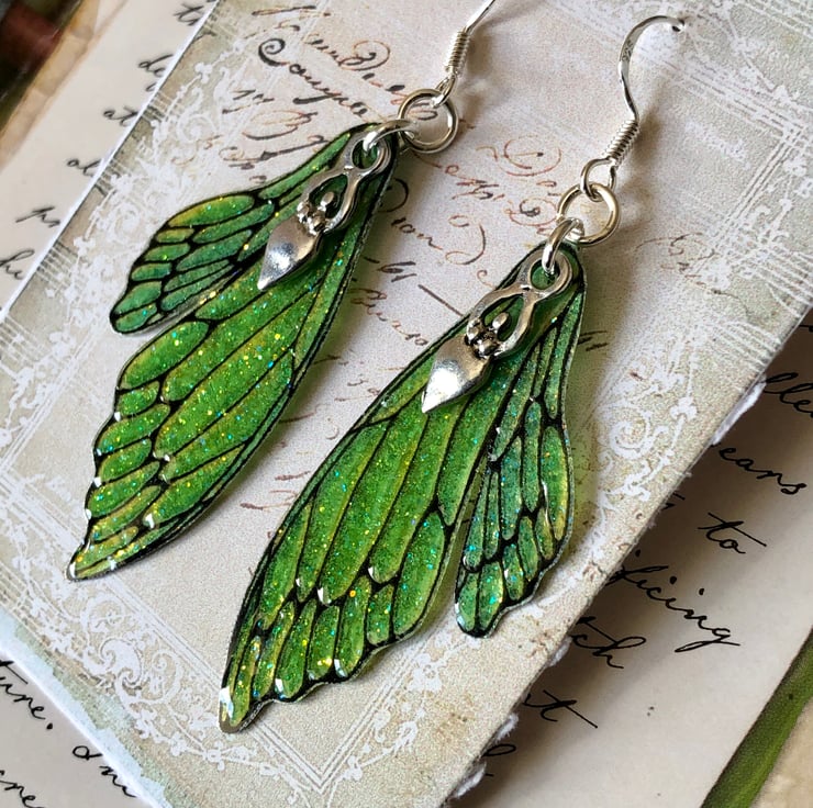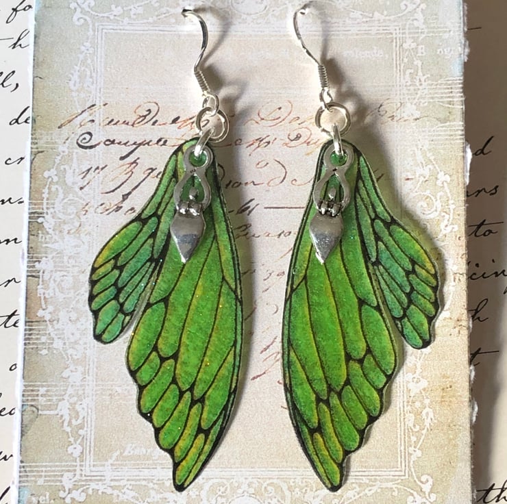 The earrings measure 70mm from the top of the sterling silver hook to the tip of the wing.