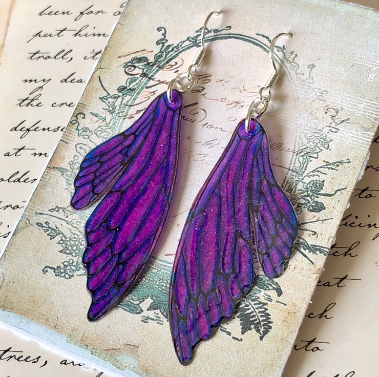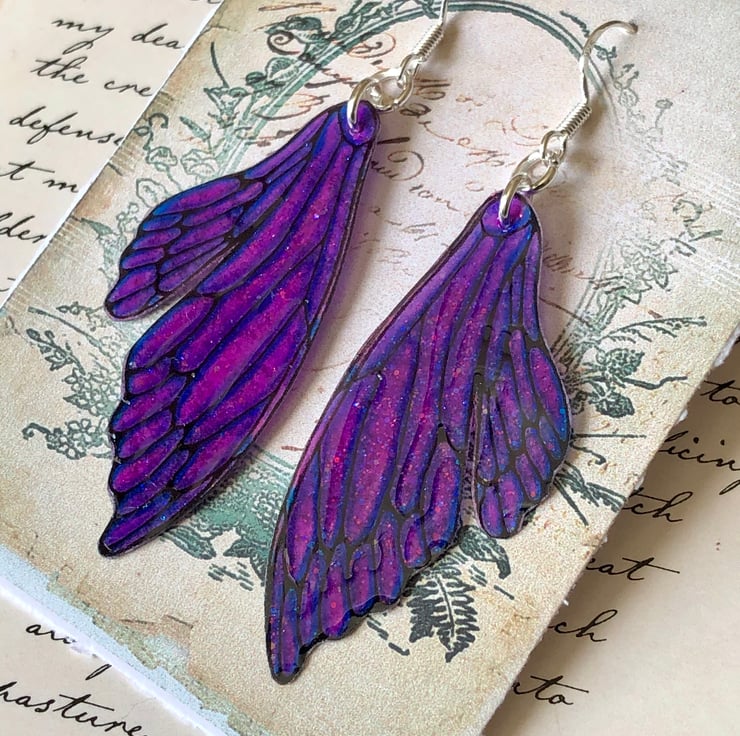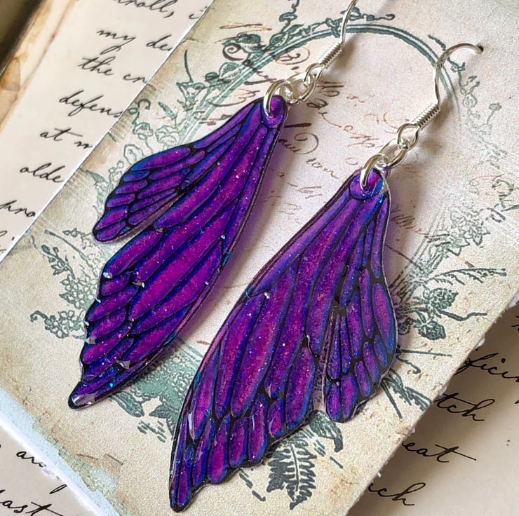 The earrings measure 70mm from the top of the sterling silver hook to the tip of the wing.