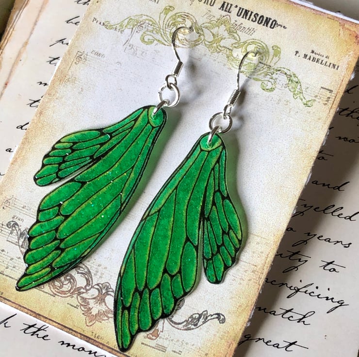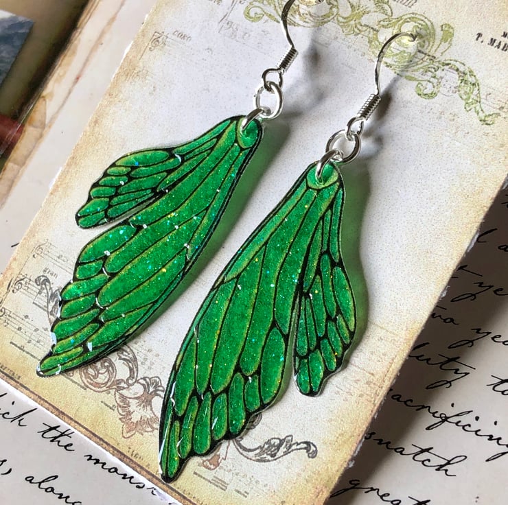 The earrings measure 70mm from the top of the sterling silver hook to the tip of the wing.