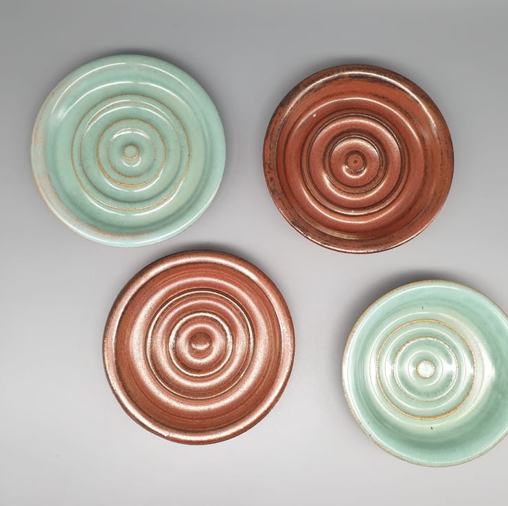 Hand made on the potters wheel and hand decorated. These soap dishes have raised grooves to keep your soap dry and not let it disintegrate into a mushy mess.