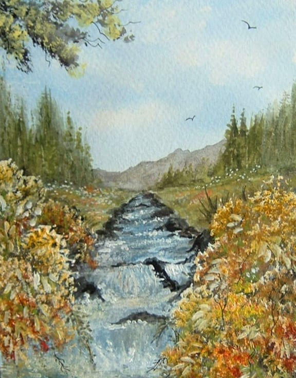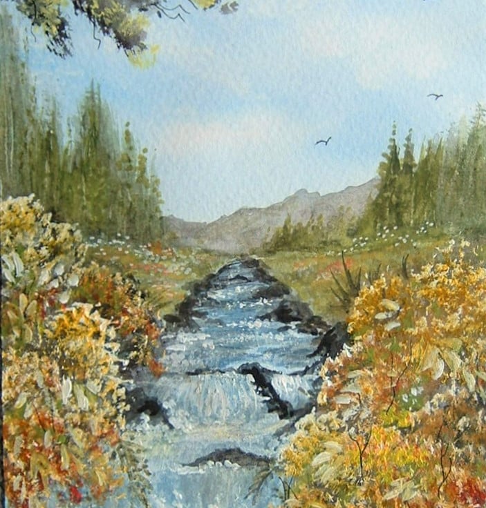 Painted in watercolours with a touch of acrylic paint to highlight some of the areas.