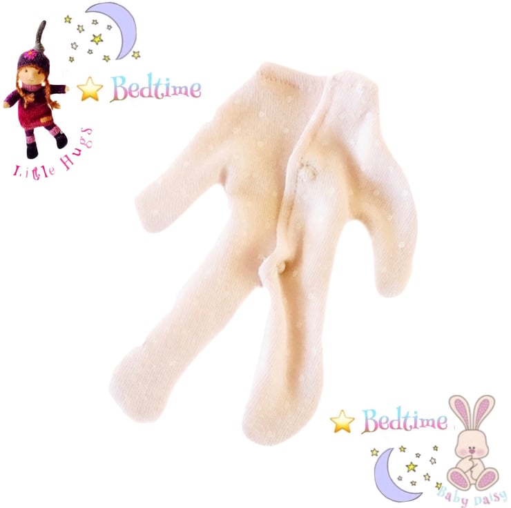 A cute little pale pink sleepsuit with tiny white spots, made specially to fit Baby Daisy and the Little Hugs doll’s. The sleepsuit is made from cotton jersey and fastens at the front with poppers.