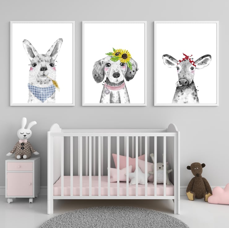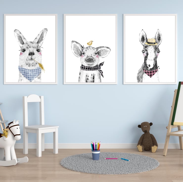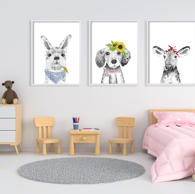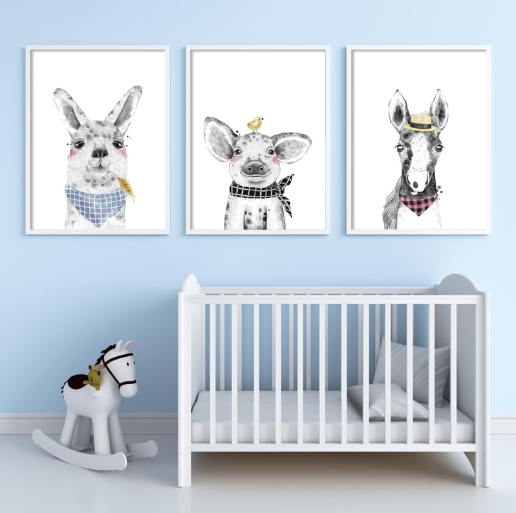 Watercolour  farm animals nursery prints, farm animals wall decor