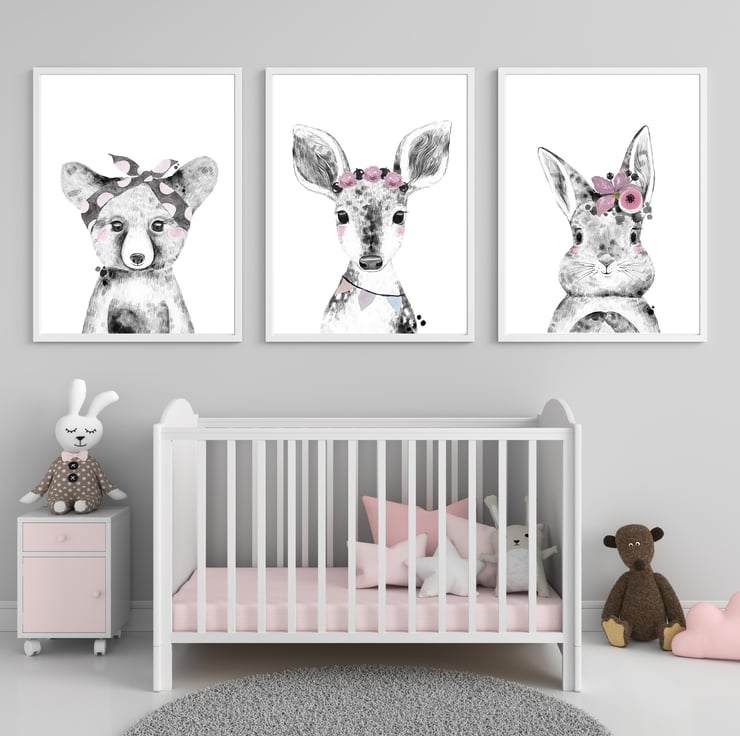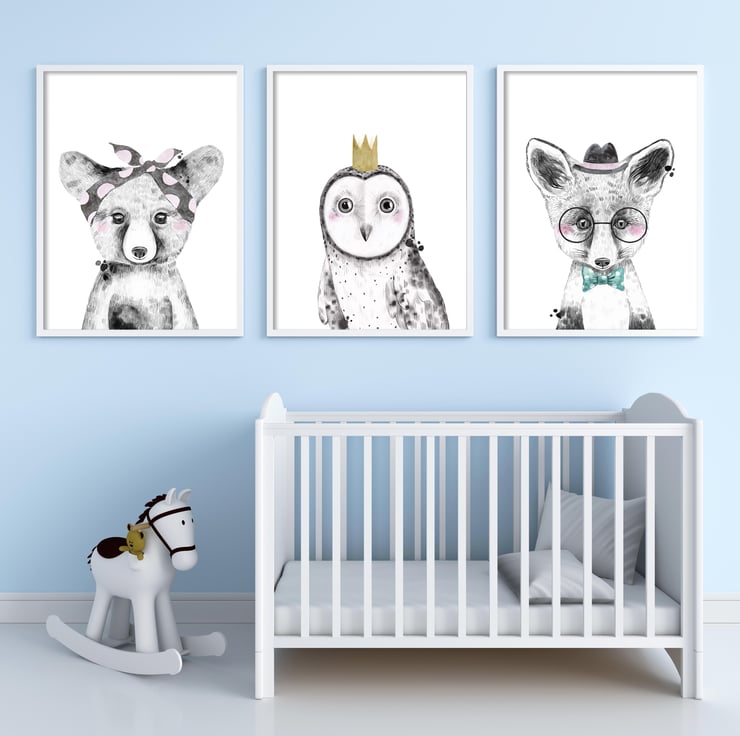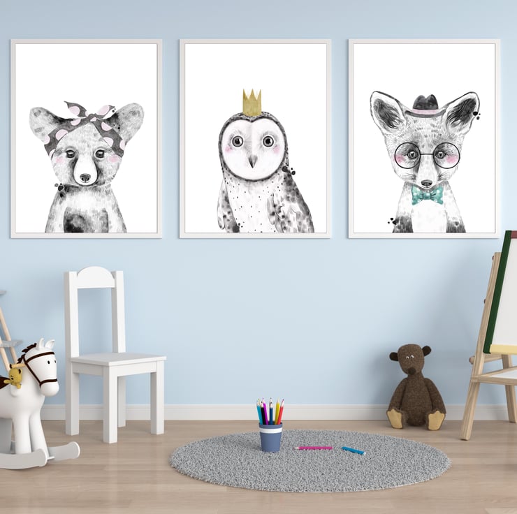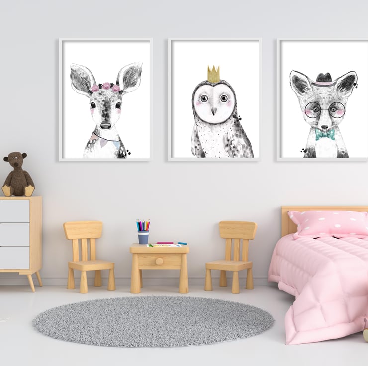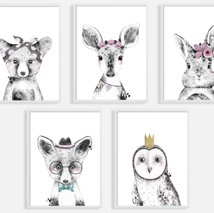 Watercolour forest animals nursery prints, woodland animals wall decor
