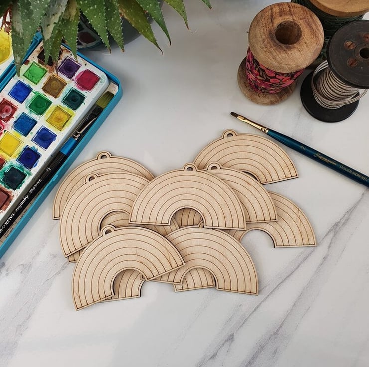 Need a little joy in your life? (Don’t we all?) This laser cut rainbow bunting is here to brighten up any space with bold colours, good vibes, and a whole lot of handmade charm. Each rainbow is cut from wood, hand-painted in vibrant shades, and strung together with rustic twine – ready to hang and make someone smile.