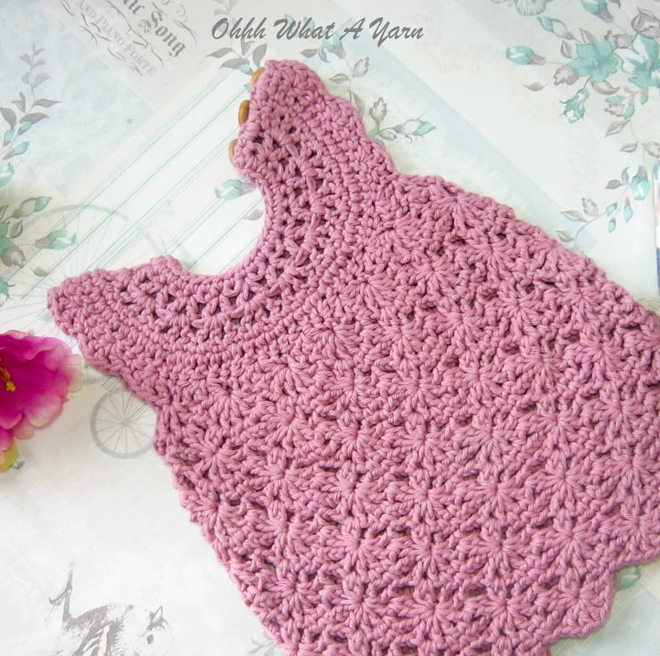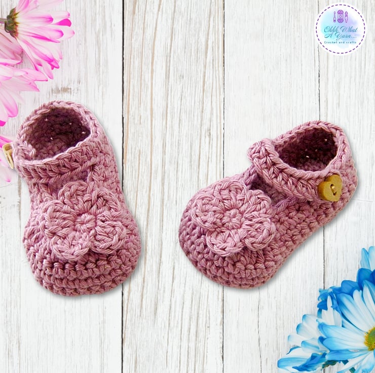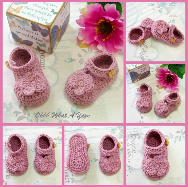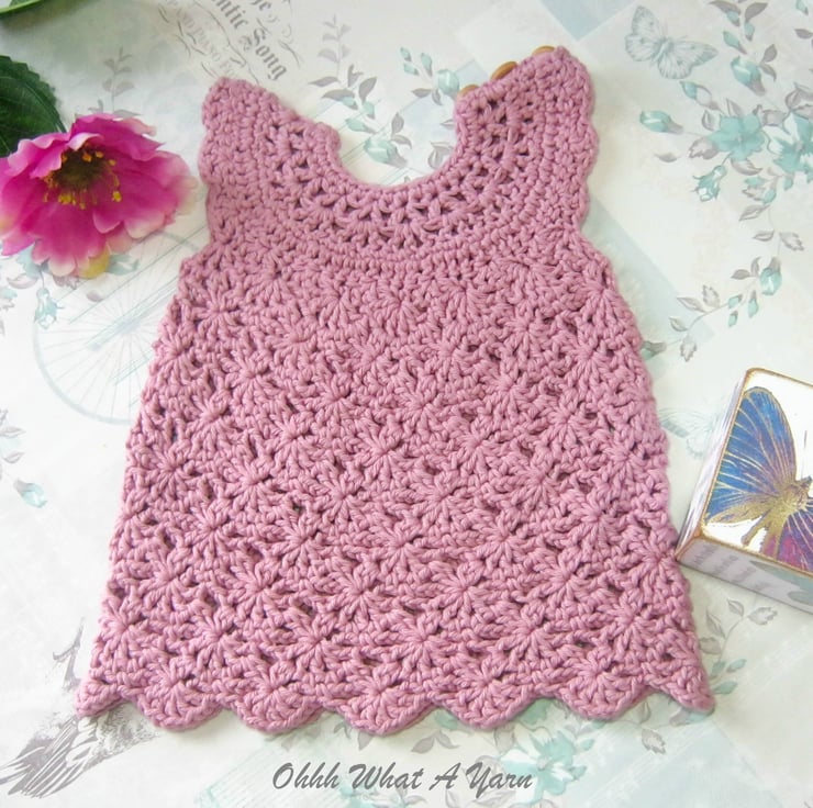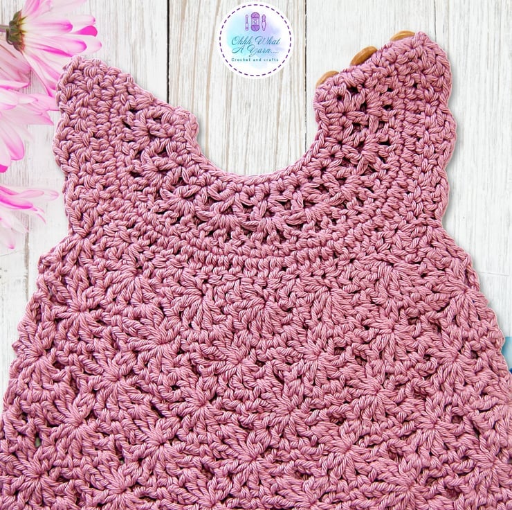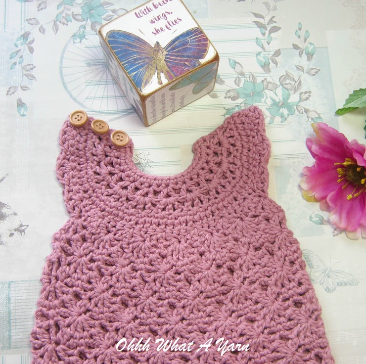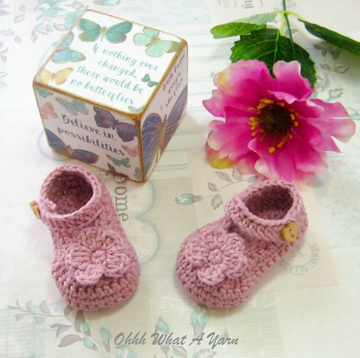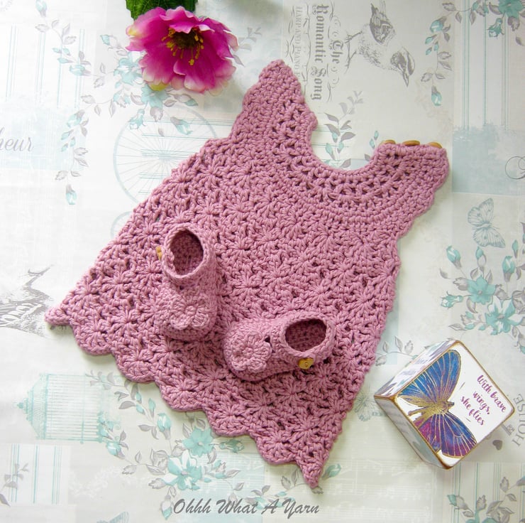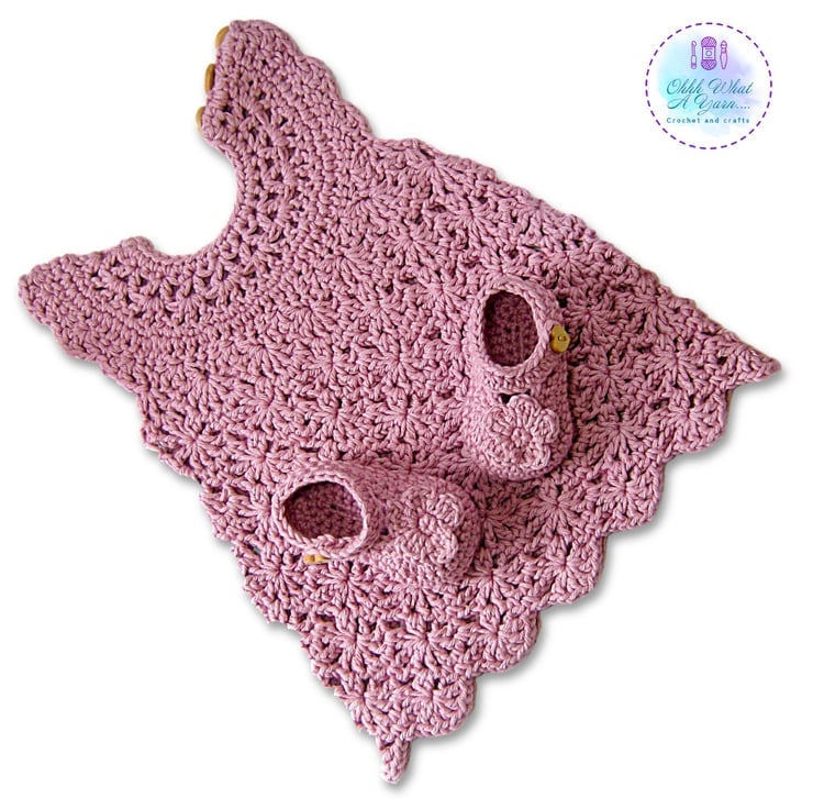 This gorgeous dusty pink baby sun dress and shoes set has been crocheted using gorgeous Stylecraft Classique 100% cotton yarn.