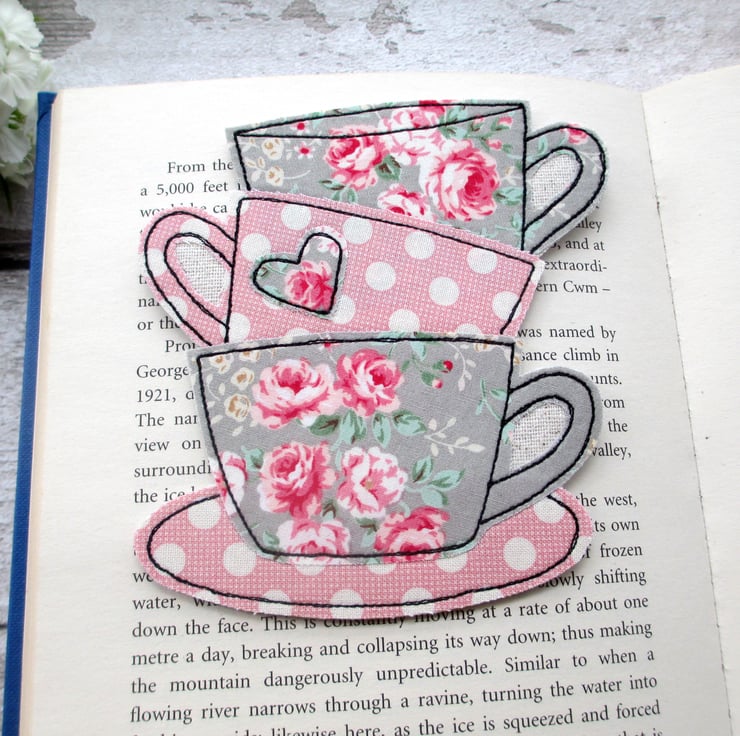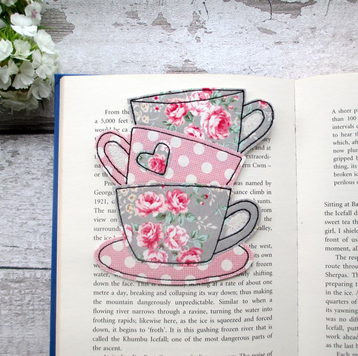 Why not treat yourself, and make reading that much more special with this quirky tea cup stack fabric bookmark.