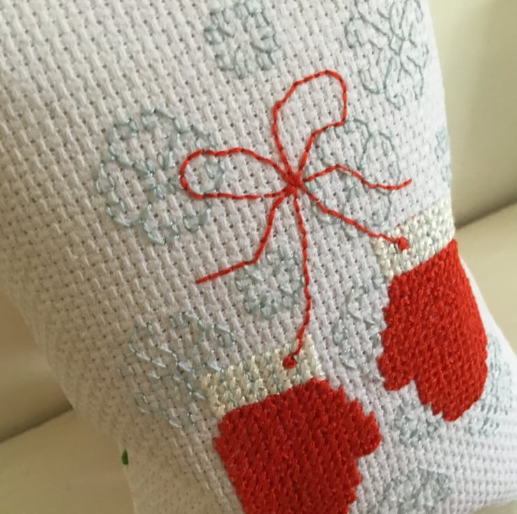 A beautiful keepsake cross stitch hanging decoration For Christmas.