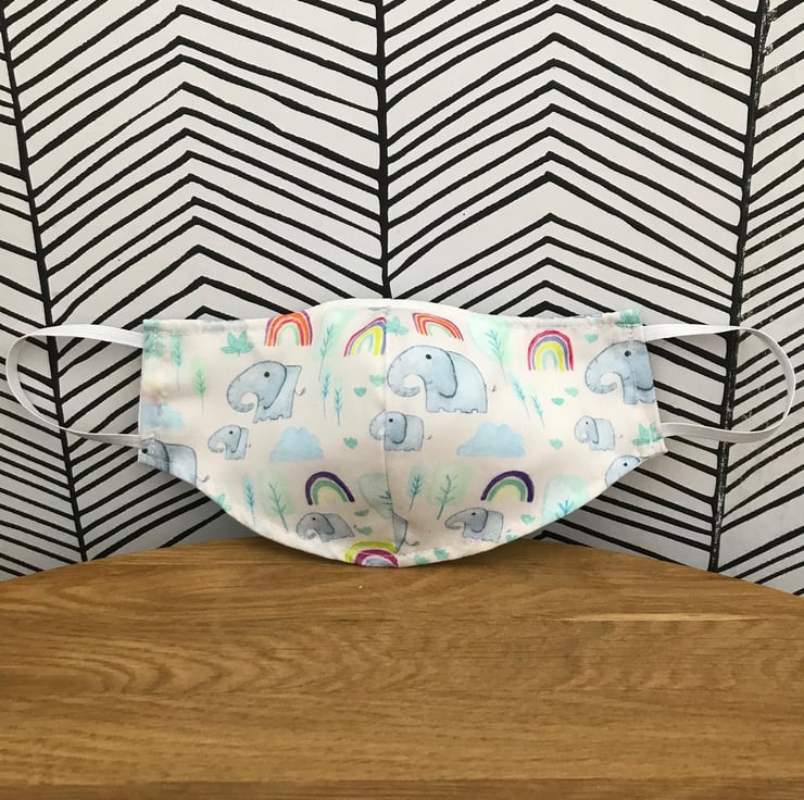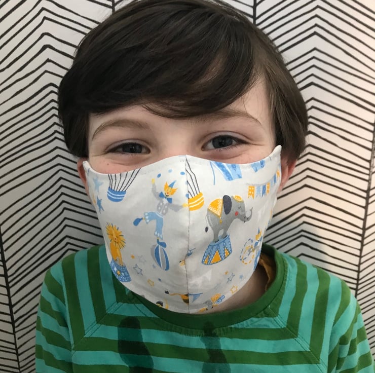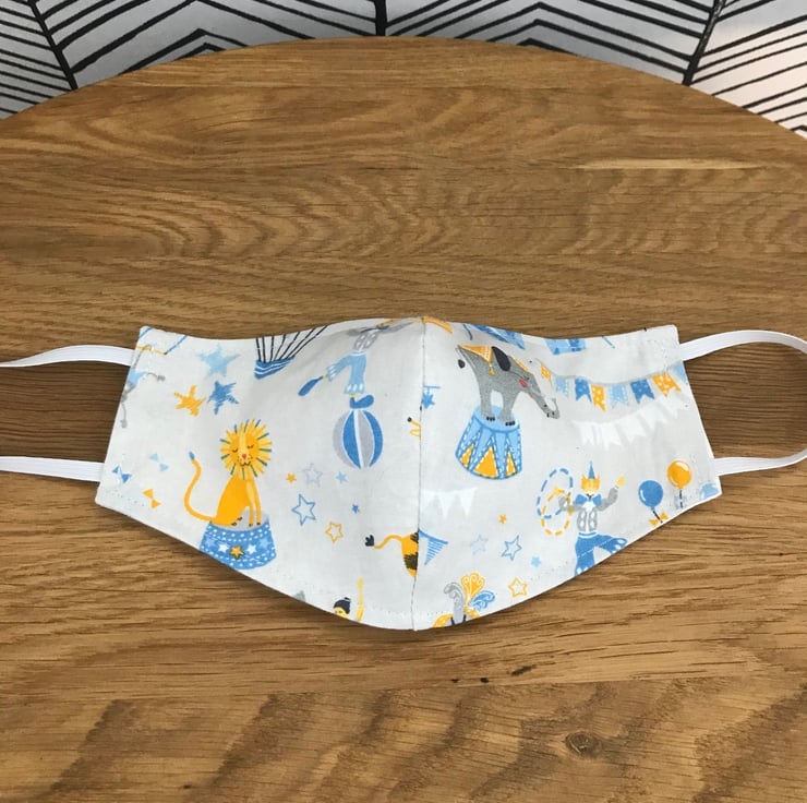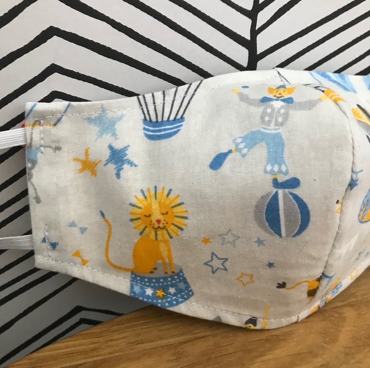 Face Mask Washable and Re-usable 100% Cotton Fabric face covering - Child to Adult Sizes - Choose from 20 fabric designs - Blue Circus, Stars, Cactus, Bright Flowers, Rainbows, Feathers
