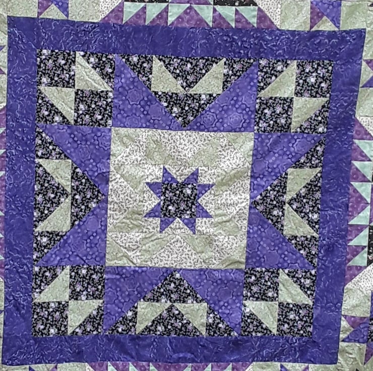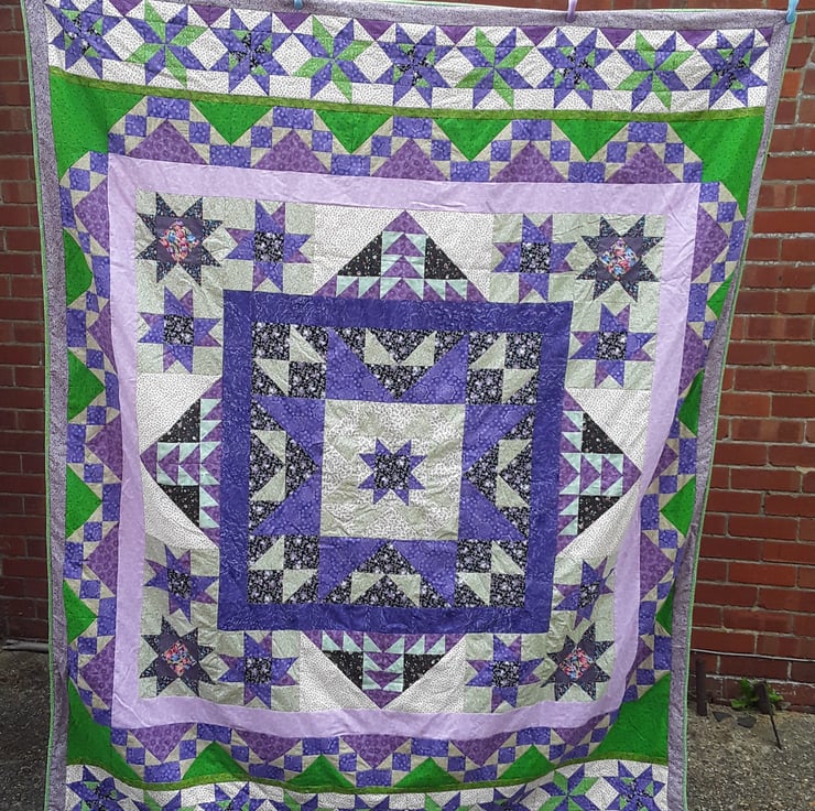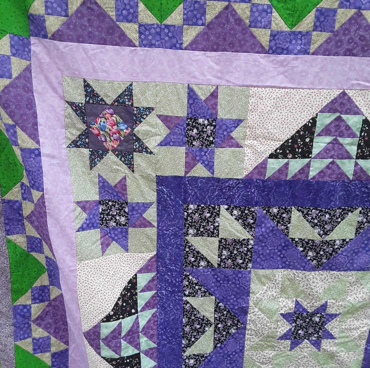Purple and Green Patchwork quilt