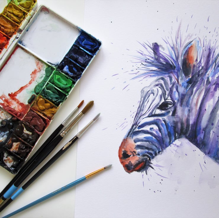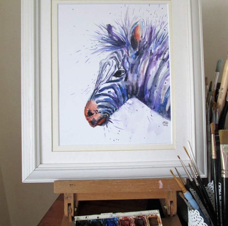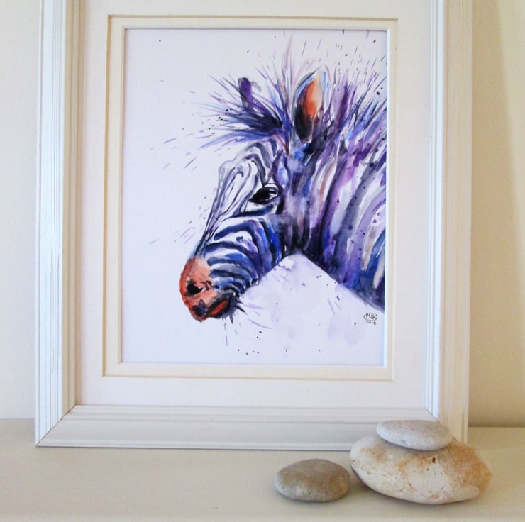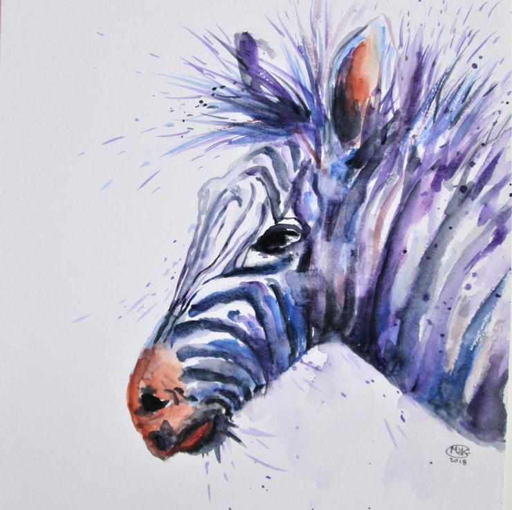 A lovely striped zebra portrait. I used purples and blues to capture this lovely animal