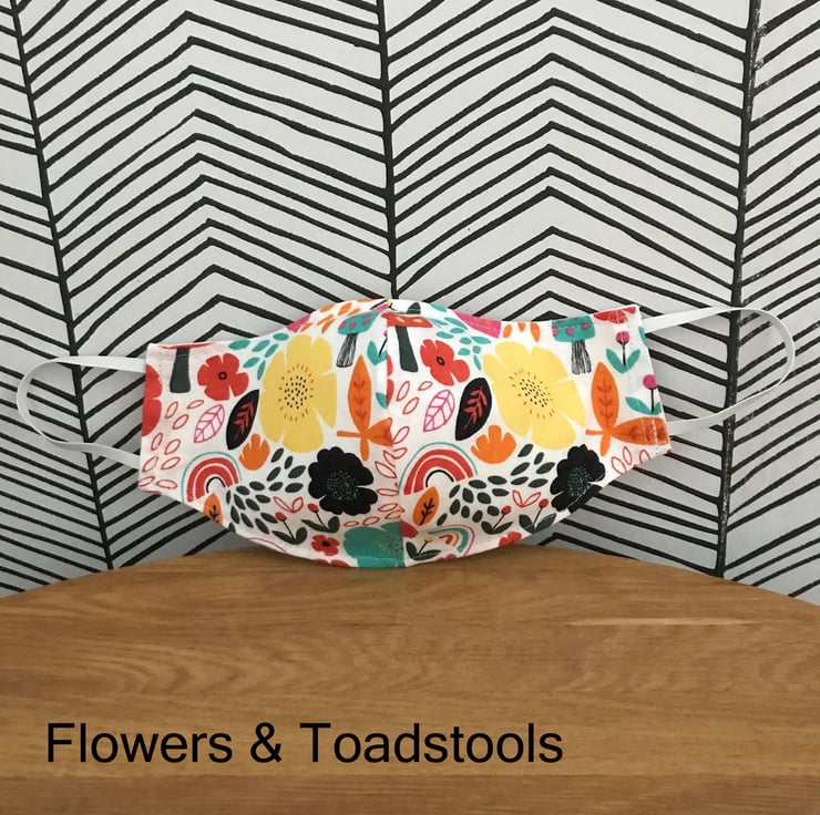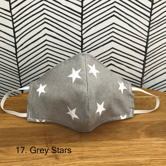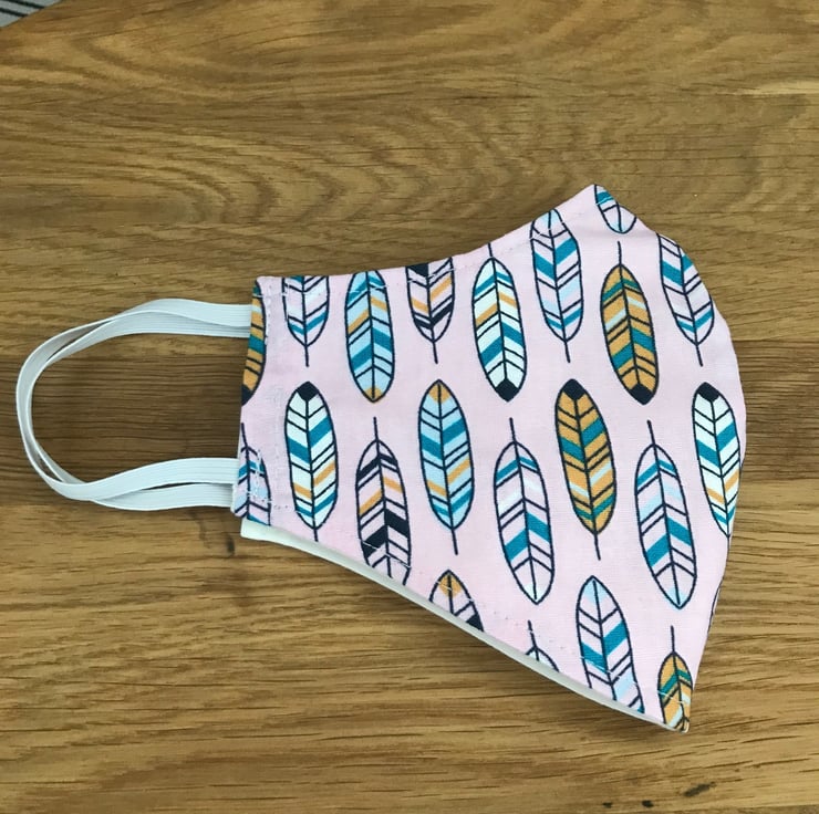 Face Mask Washable and Re-usable 100% Cotton Fabric face covering - Child to Adult Sizes - Choose from 20 fabric designs - Feathers, Stars, Cactus, Bright Flowers, Rainbows, Flamingos