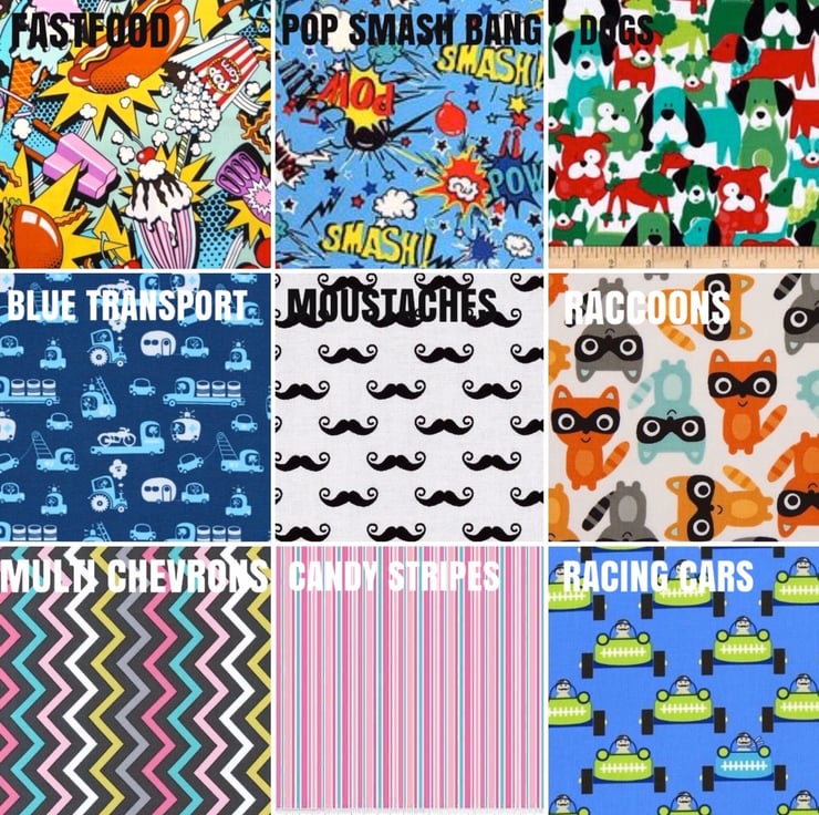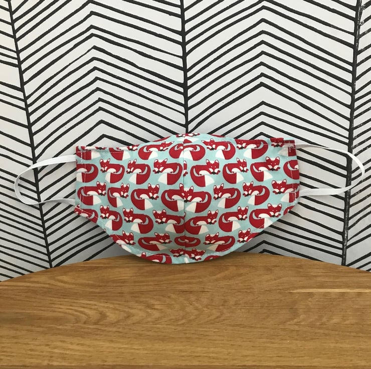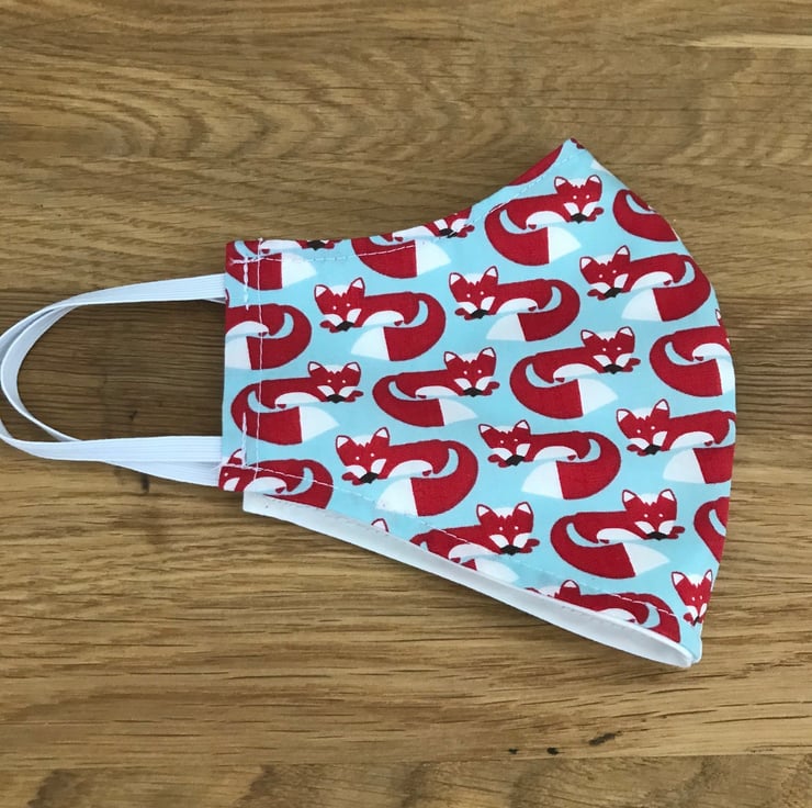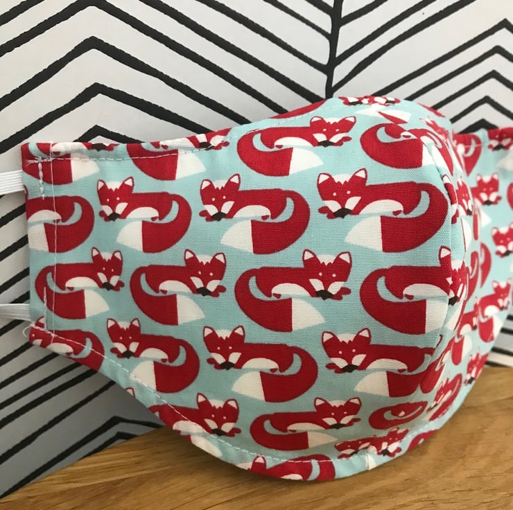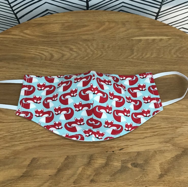 Face Mask Washable and Re-usable 100% Cotton Fabric face covering - Child to Adult Sizes - Choose from 20 fabric designs - Red Blue Foxes, Cars, Lions, Superhero, Rainbows, Animals