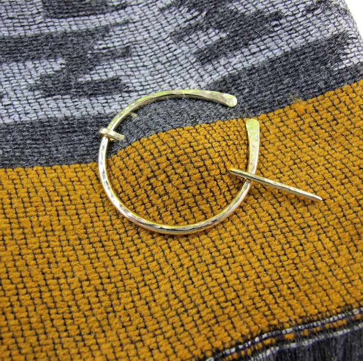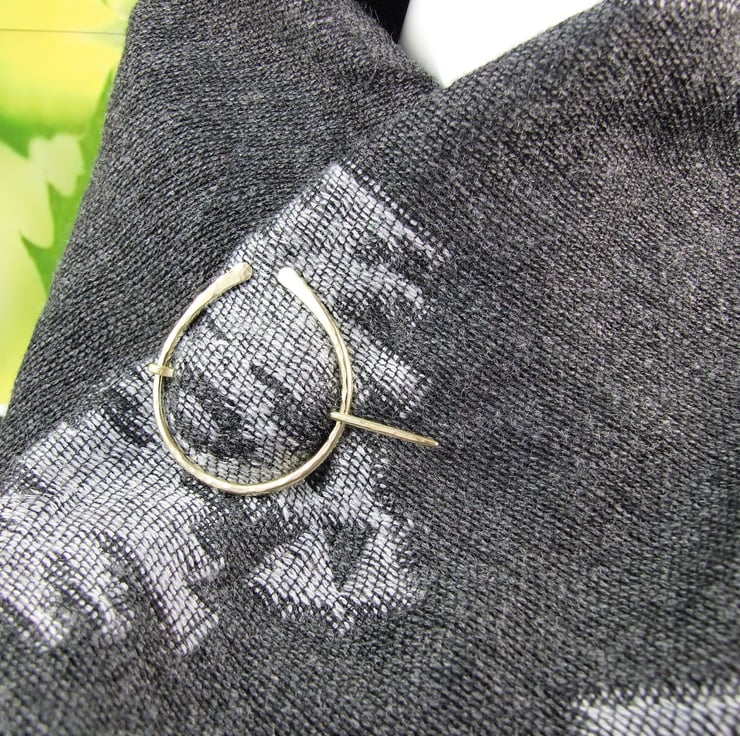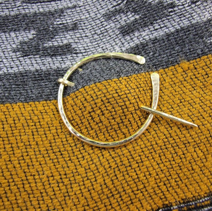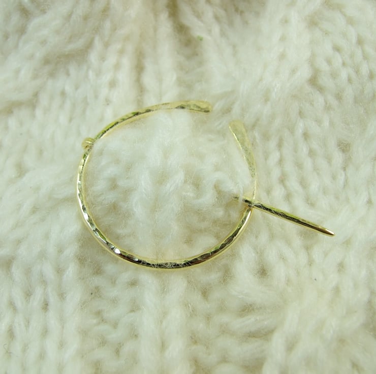 Hand forged hammered Brass Celtic Pennanular Brooch for Open Weave or Knit Shawl, Scarf, Wrap or Cardigan.