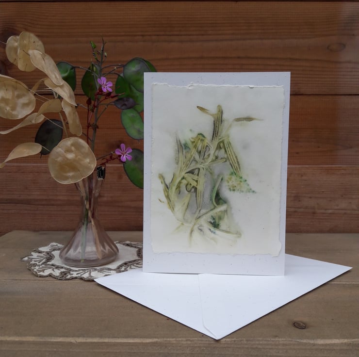 The print is mounted on recycled card size A6/C6 (10.4cm x 14.7cm) which comes with a matching envelope.