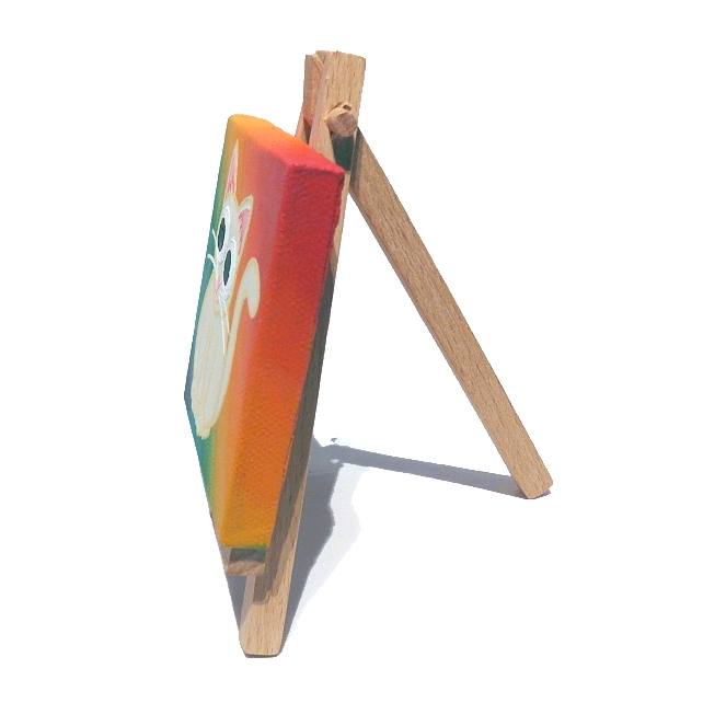 The original cat canvas will either come with a 12cm (4.7") wooden easel for display, or will be strung with a ribbon in a colour that matches the painting so it can be hung on a wall (as in the last photo). Just choose with easel or ribbon hanging when you buy.