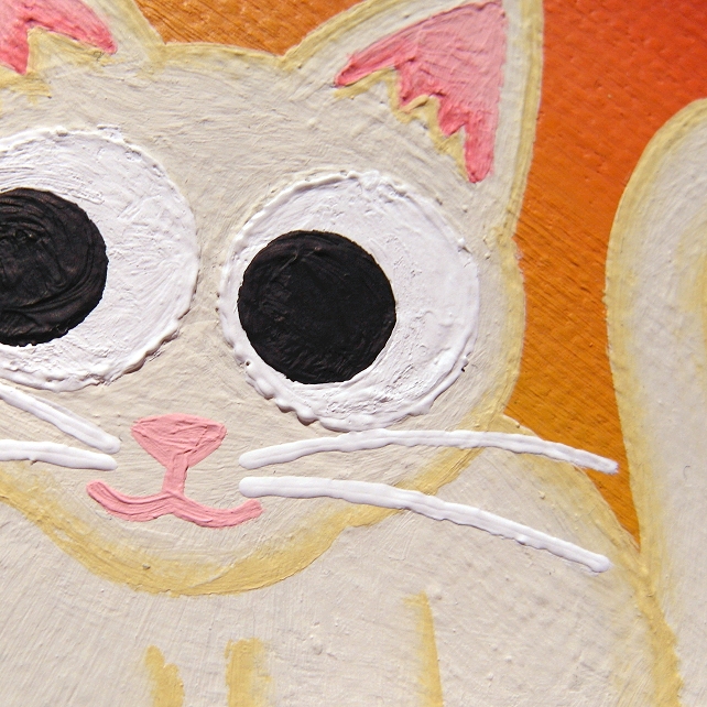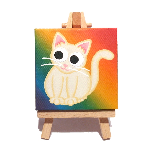 The cute rainbow cat painting is done in acrylics on a 7.5cm (3") square canvas and is signed and dated on the back.
