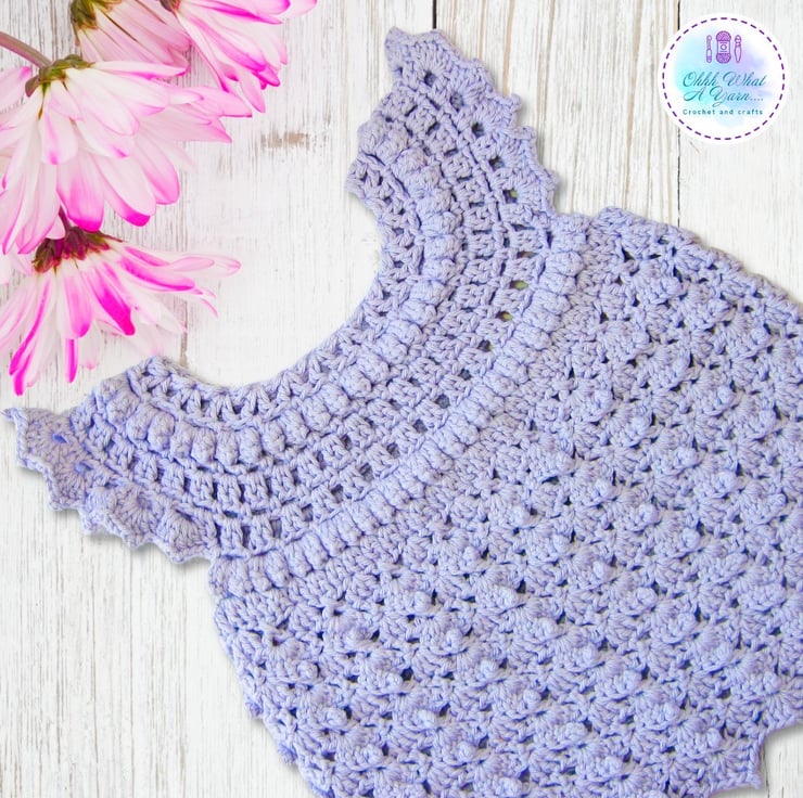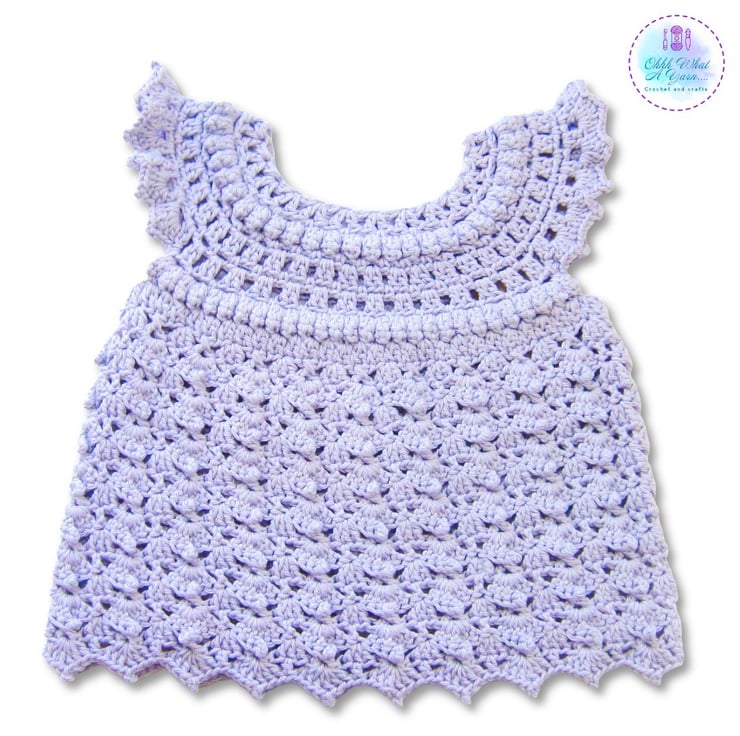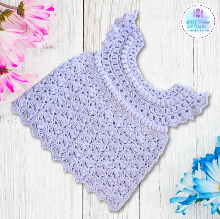 This gorgeous pale lilac baby sun dress has been crocheted using gorgeous James C Brett 100% cotton yarn.