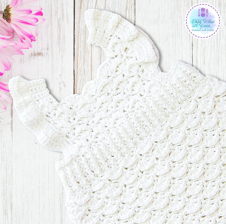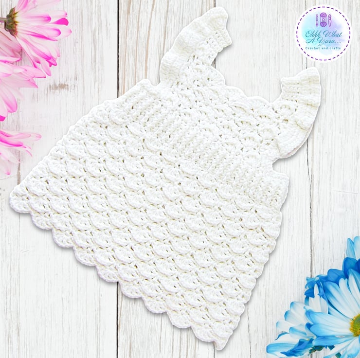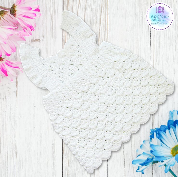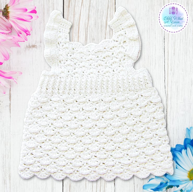 This gorgeous off white pinafore has been crocheted in the beautiful James C Brett 100% cotton yarn.