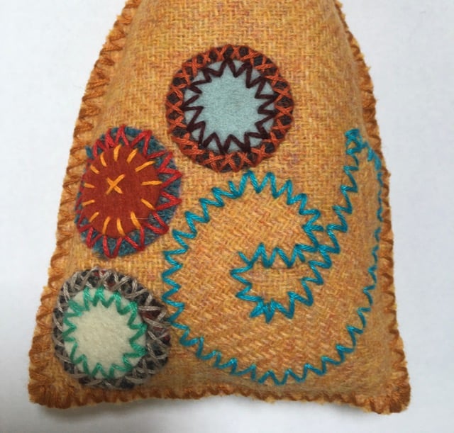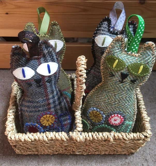 I Iove Folk Art textiles artefacts and my Krazy Katz have evolved around my research of these. Using natural materials like Wool Felt and Wool Tweed, is always enjoyable and with the hand embroidered decoration the traditions of Folk Art are continued.