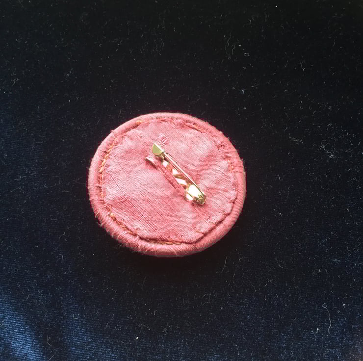 The brooch is hand finished on the back and fastens with a metal brooch pin.