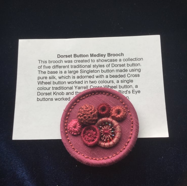 This brooch was created to showcase a collection of five different traditional styles of Dorset button.