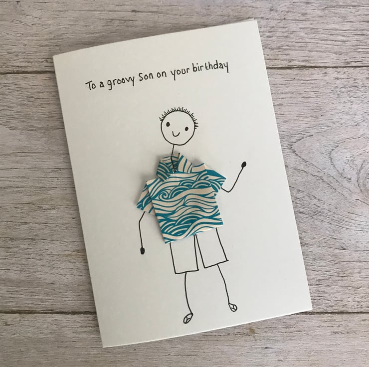 Each of my cards are hand drawn by me and not printed (apart from the funky paper used for the shirts).