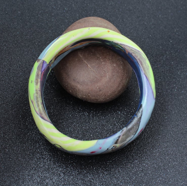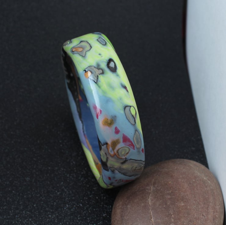 A sophisticated palette of lovely colours in an abstract, post-expressionist style make this a charming, eye-catching bangle, bursting with positive vibes!.