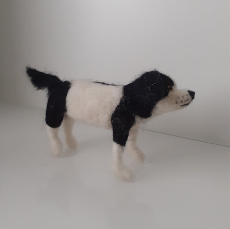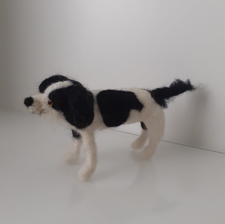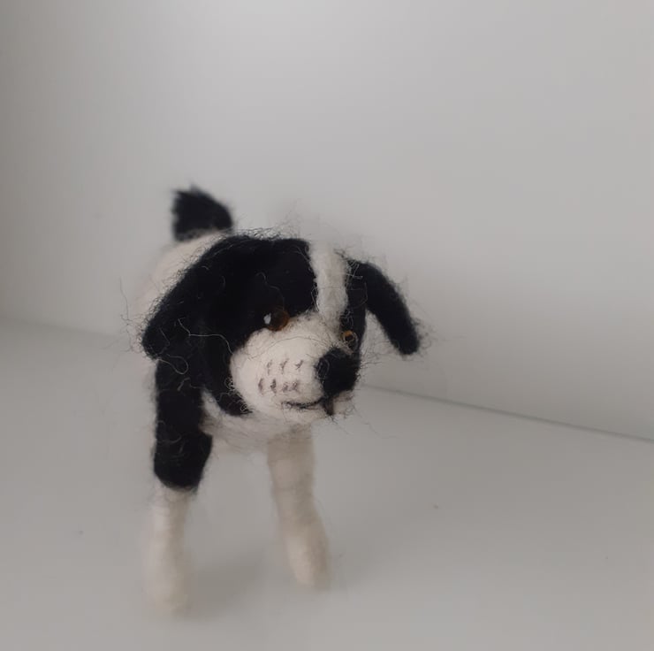 All wool,needle felted on a wire armature so that you can easily pose him as desired.