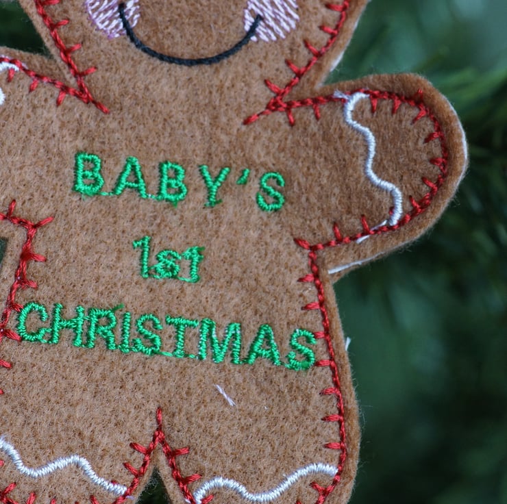 adorable baby's first Christmas hanging gingerbread tree ornament, a perfect keepsake for the new parents