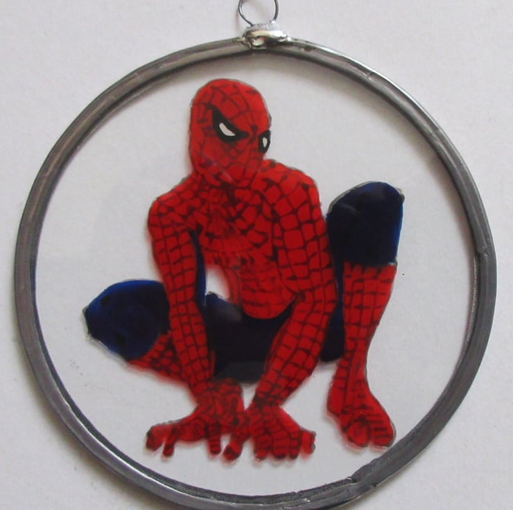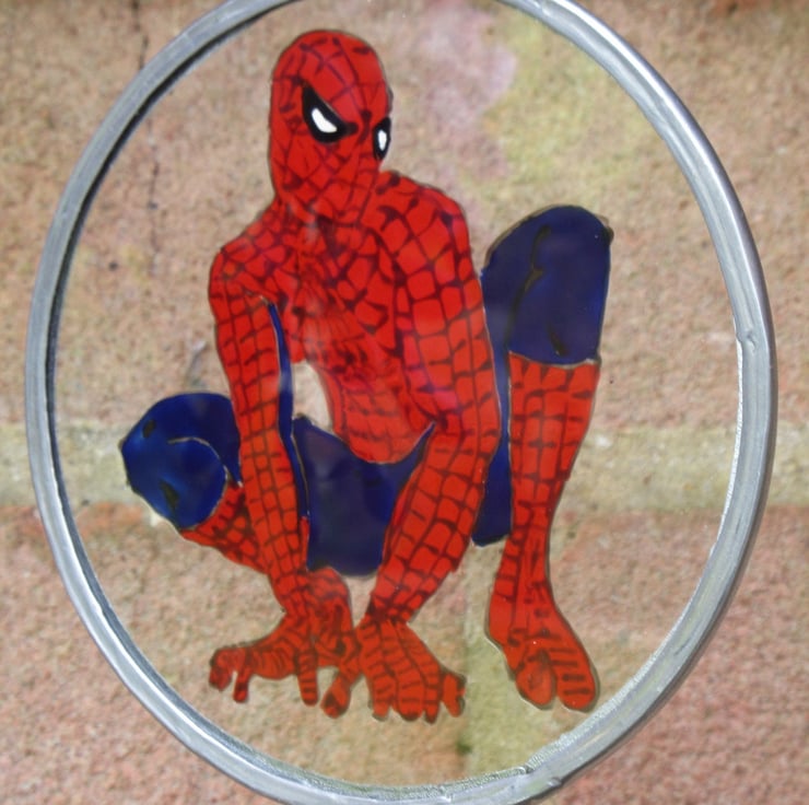This roundel has been created from scratch – I leaded the raw glass disc (which was cut to specification by my local glazier), outlined the design on the glass before painting it. The roundel was then fired in an oven according to the paint manufacturer's instructions making the item colourfast.
