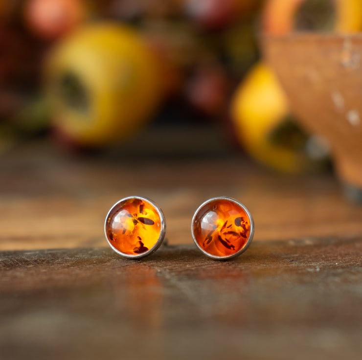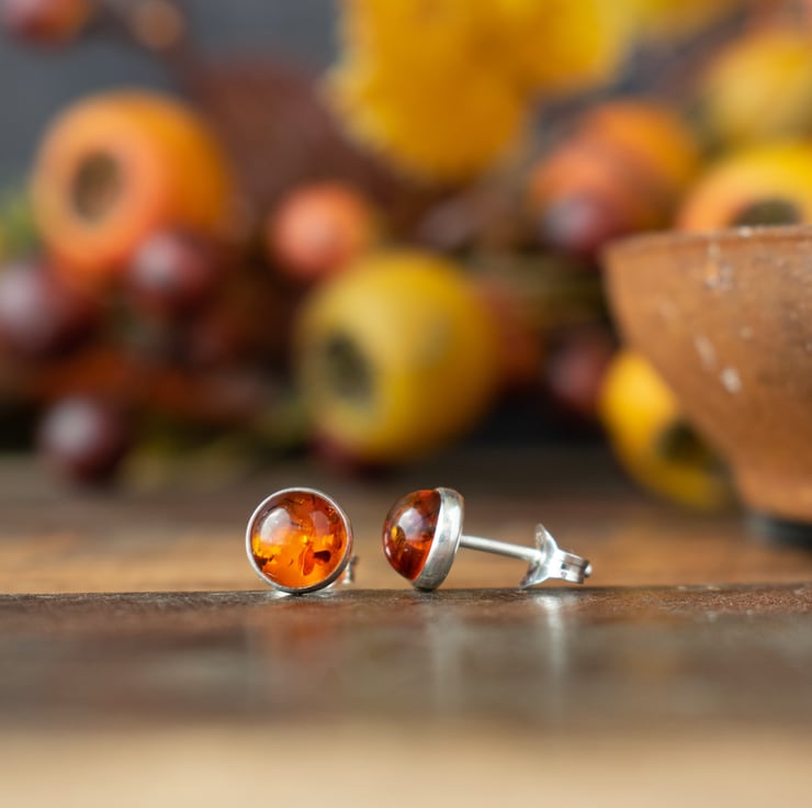 Handcrafted sterling silver stud earrings with beautiful natural amber stones. The silver is soldered in my studio before setting each stone by hand. A simple, wearable pair of earrings that are perfect for everyday.