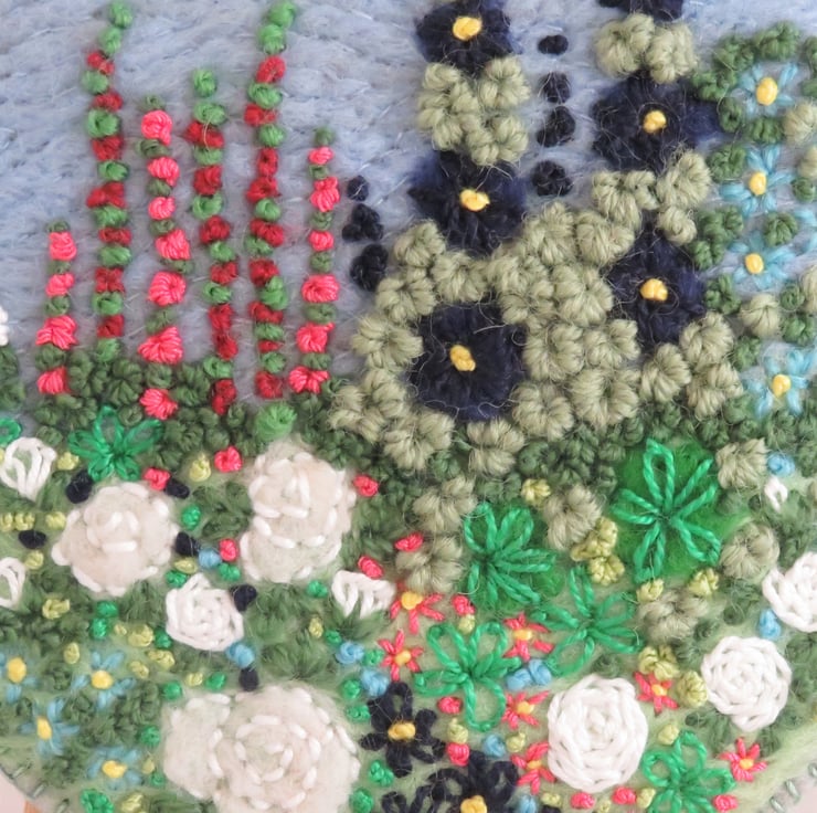 I continue to enjoy stitching garden scenes using felting and embroidery techniques.