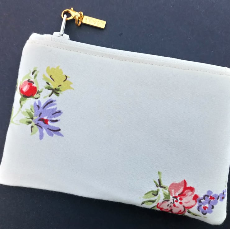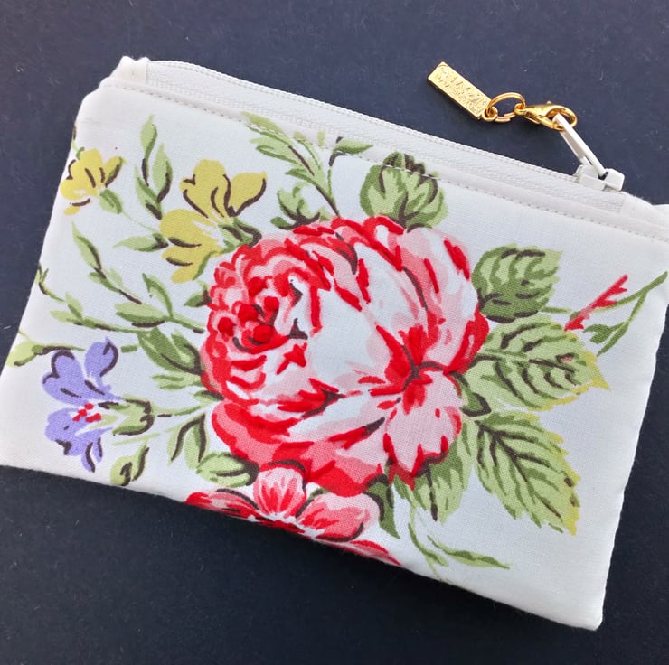 Wadded for a squishy feel and lined in cream cotton it has a made with love zip pull that can be detached and clipped onto something else