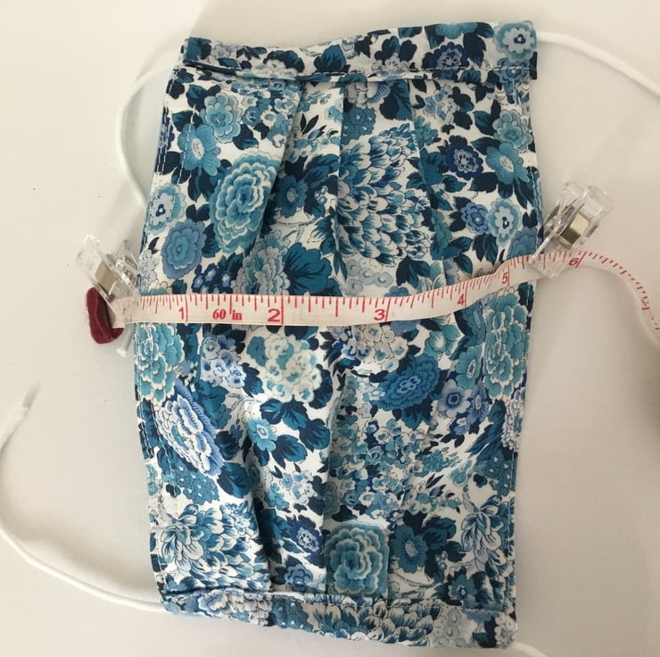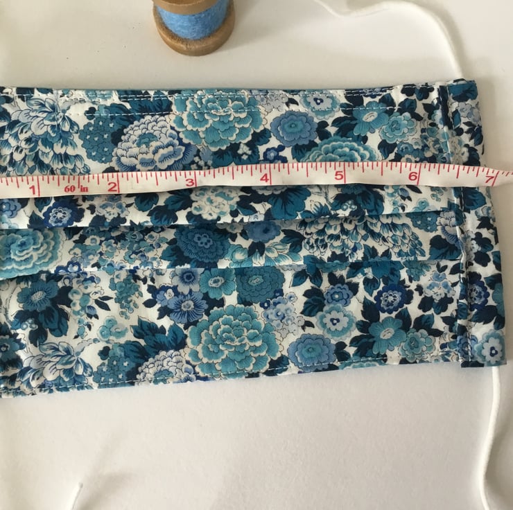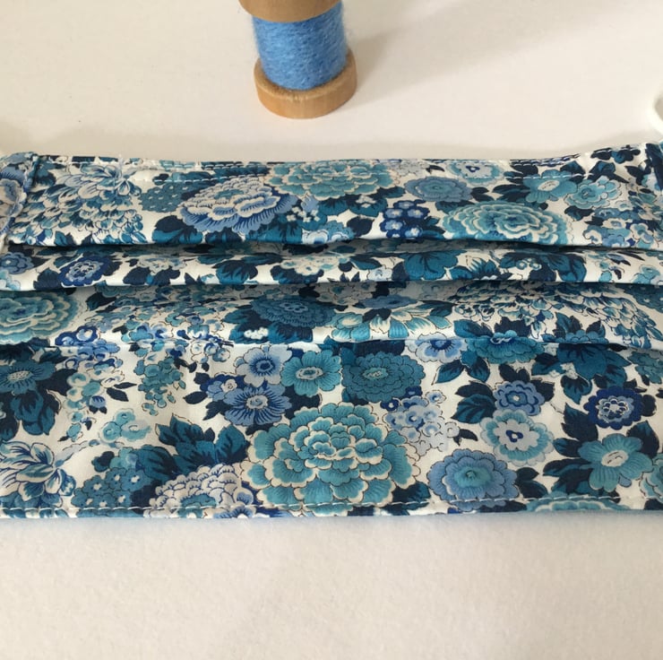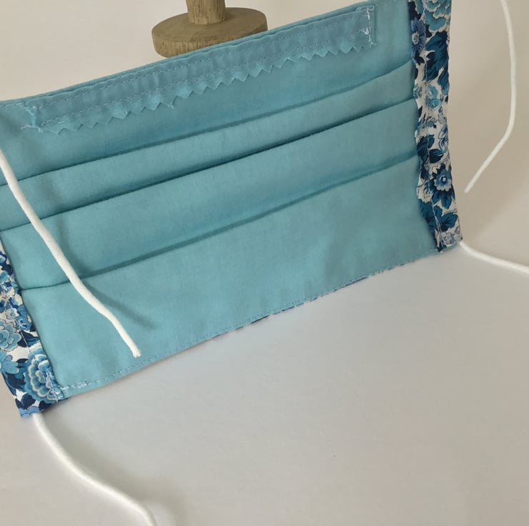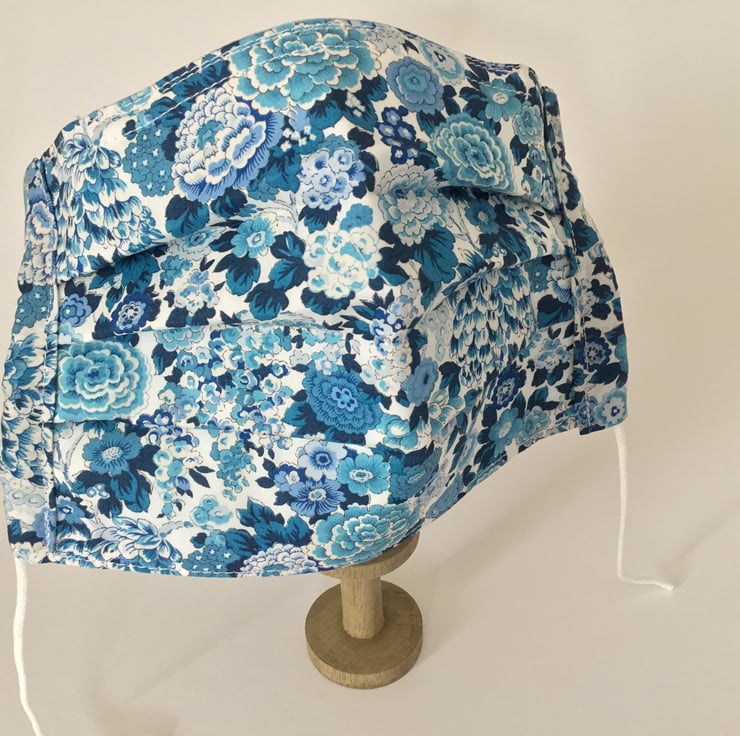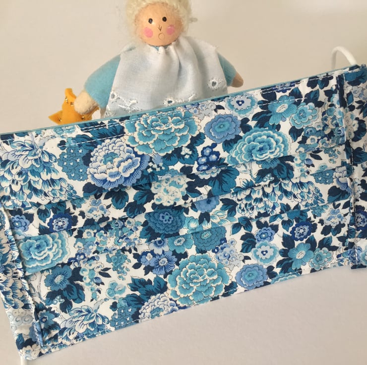 Liberty Face Covering in a beautiful blue flower fabric, double lined with cotton fabrics.