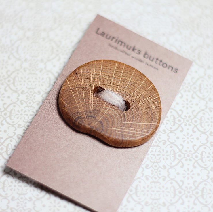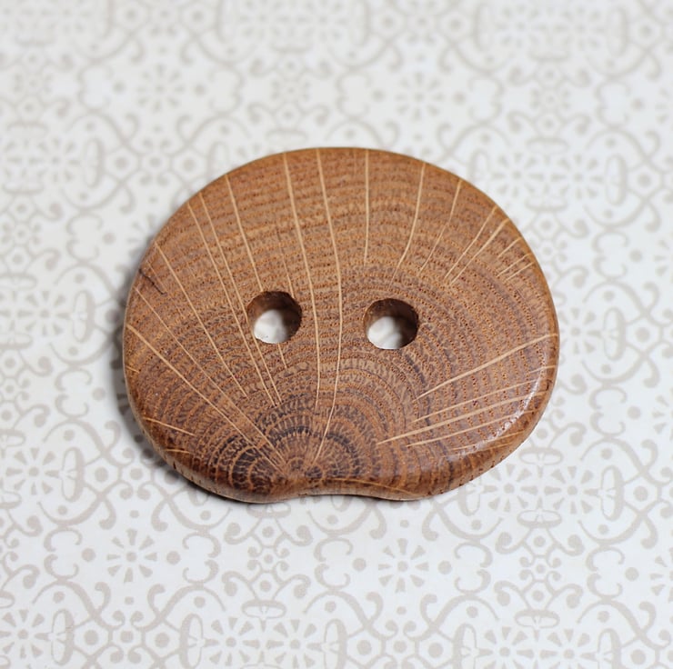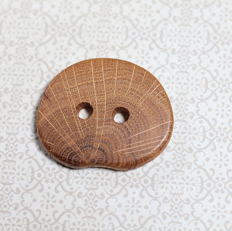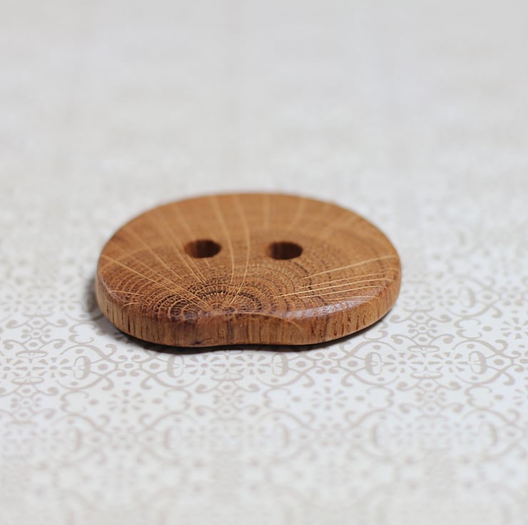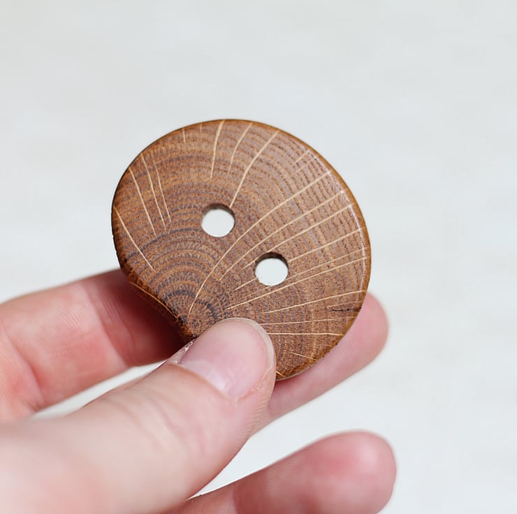 Handcrafted large statement wooden button made out of reclaimed Oak tree branch.