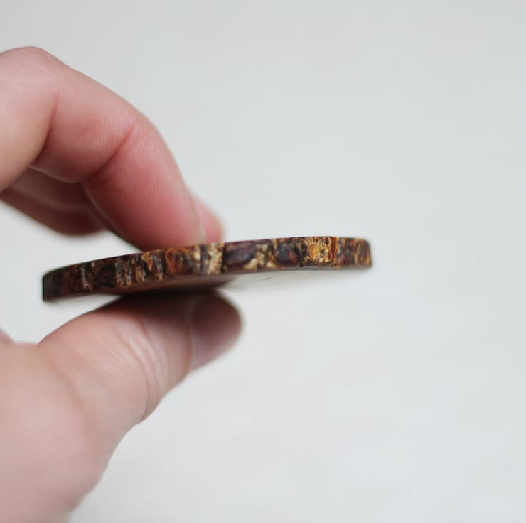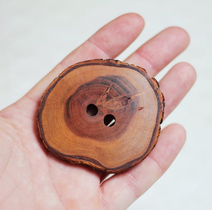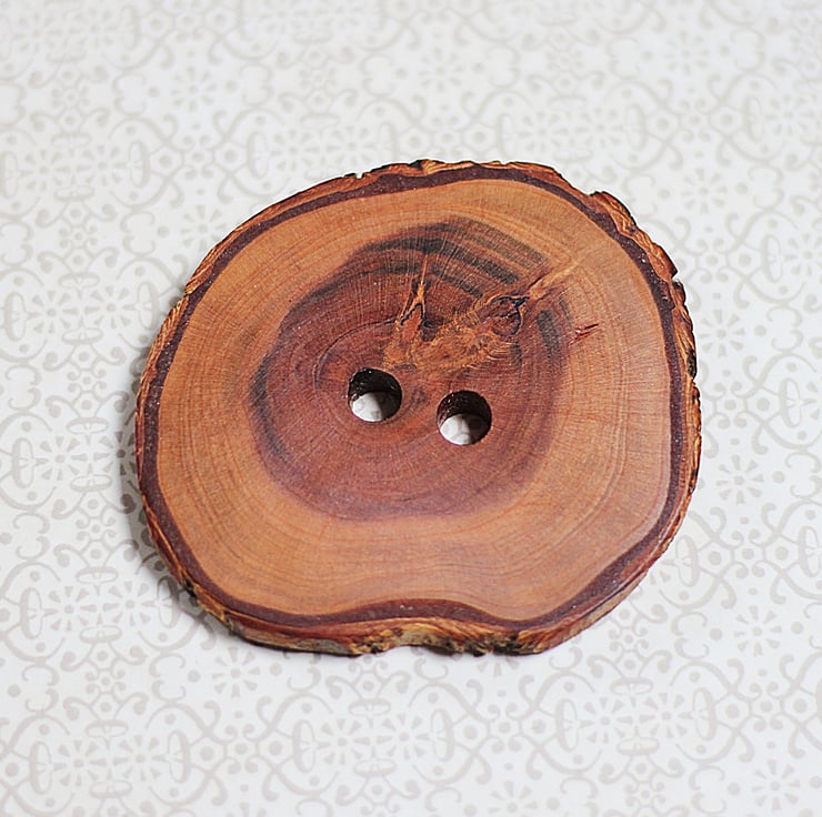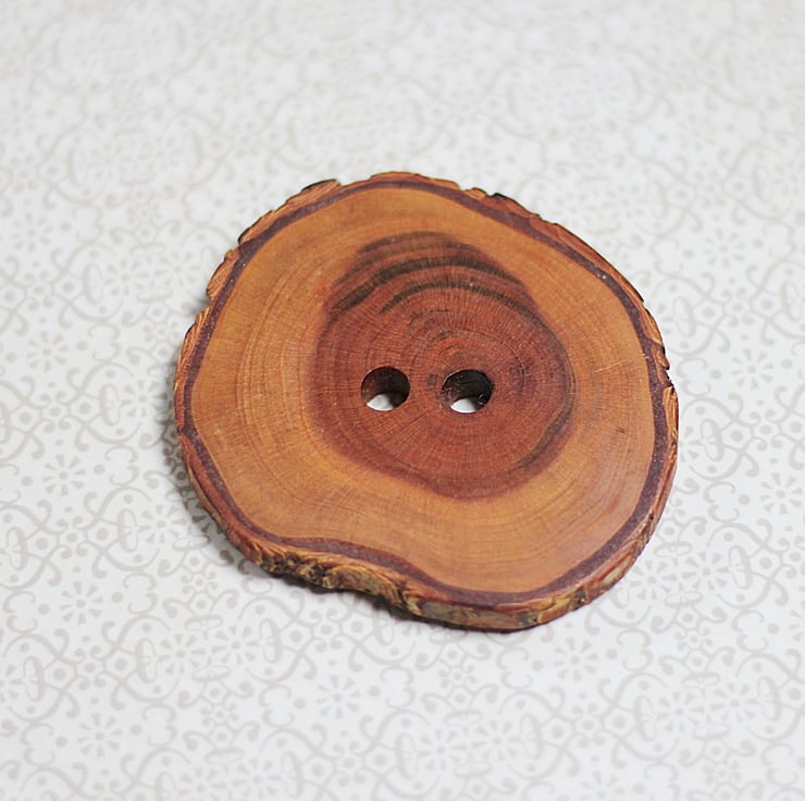 Handcrafted very large statement wooden button made out of reclaimed forest tree branch.