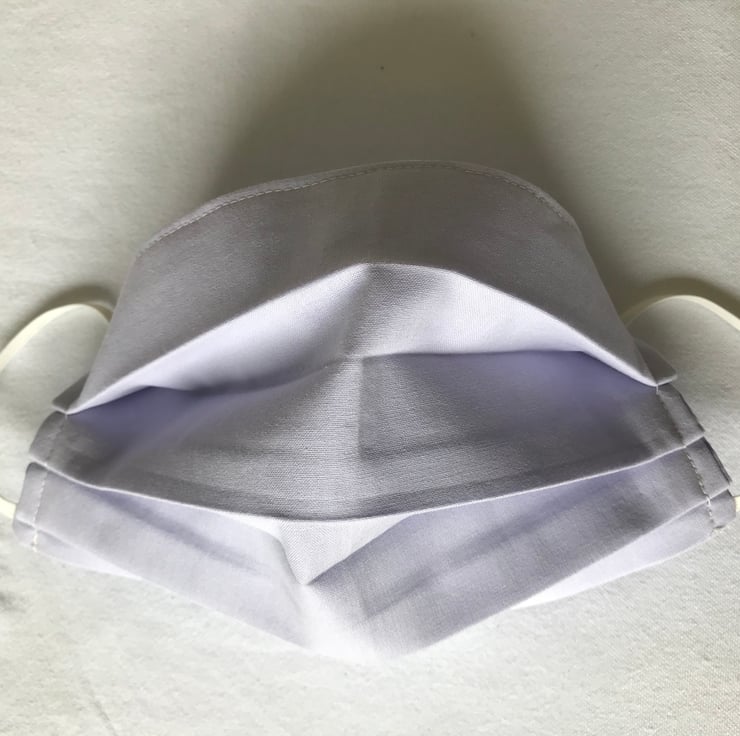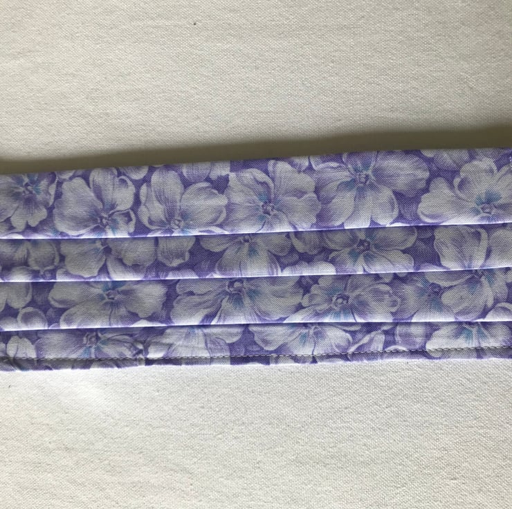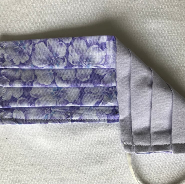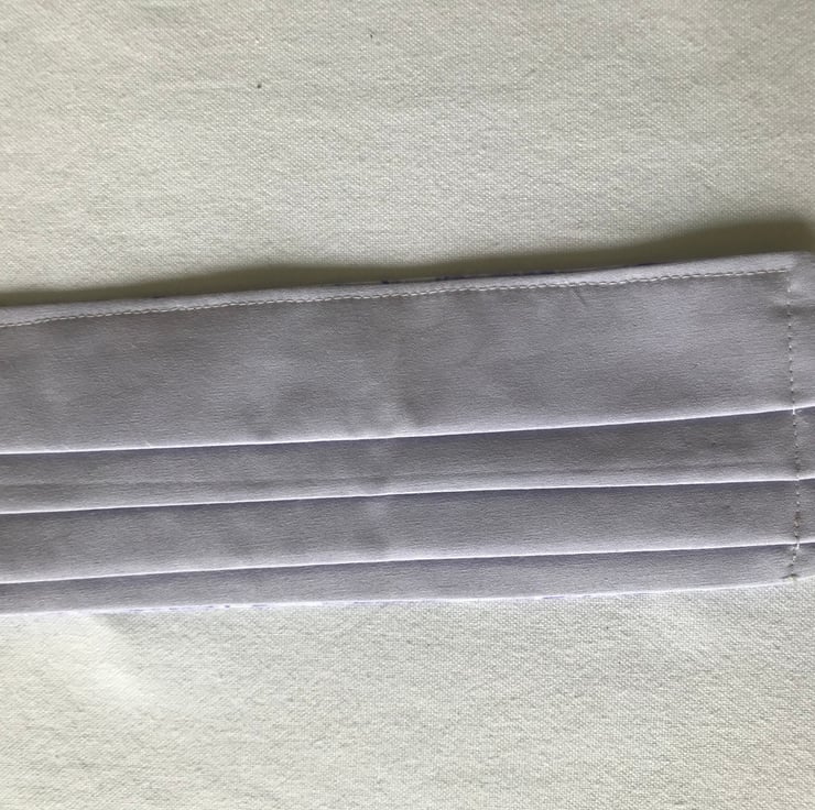 Double sided, this reusable face mask has a pretty lilac primrose print on one side and a plain pale lilac fabric on the reverse. It can be worn either way.