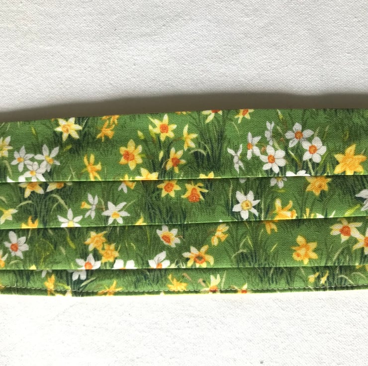 Double sided, this reusable face mask has a lovely Daffodil design on one side and is a vibrant yellow on the reverse. It can be worn either way.