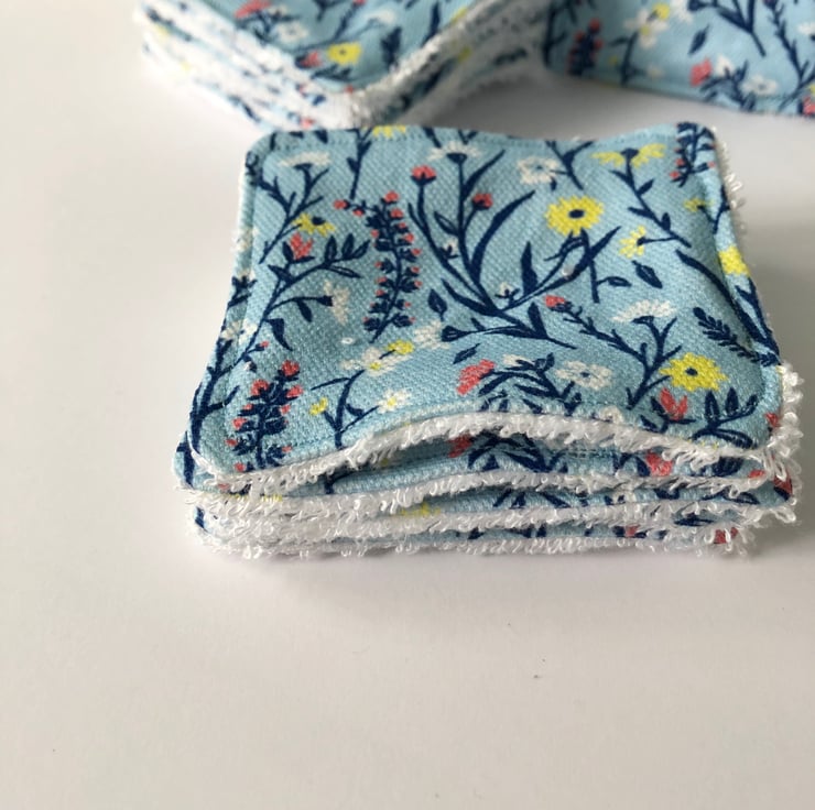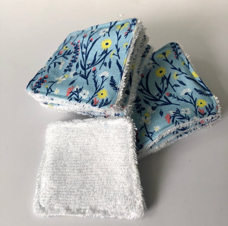 A set of 5 handmade organic cotton and organic bamboo Terry towelling face wipes. Use your favourite cleanser to remove your make up knowing you’re not throwing cotton wool into land full each time!