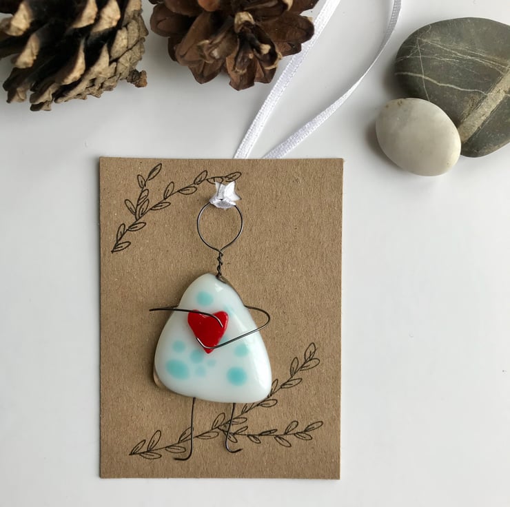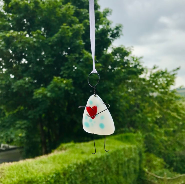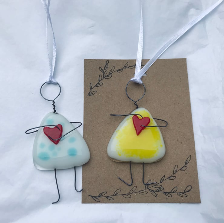 Are you wanting to send someone a hug or let them know you are thinking of them? This wire and fused glass girl holding a heart is a lovely way to do this.